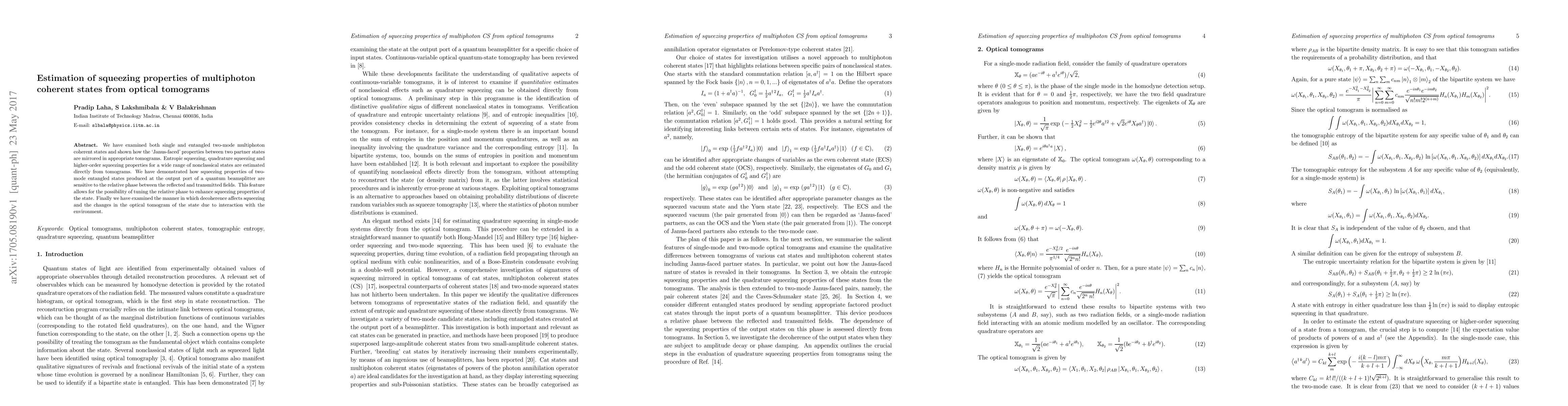 We have examined both single and entangled two-mode multiphoton coherent states and shown how the `Janus-faced' properties between two partner states are mirrored in appropriate tomograms. Entropic squeezing, quadrature squeezing and higher-order squeezing properties for a wide range of nonclassical states are estimated directly from tomograms. We have demonstrated how squeezing properties of two-mode entangled states produced at the output port of a quantum beamsplitter are sensitive to the relative phase between the reflected and transmitted fields. This feature allows for the possibility of tuning the relative phase to enhance squeezing properties of the state. Finally we have examined the manner in which decoherence affects squeezing and the changes in the optical tomogram of the state due to interaction with the environment.
