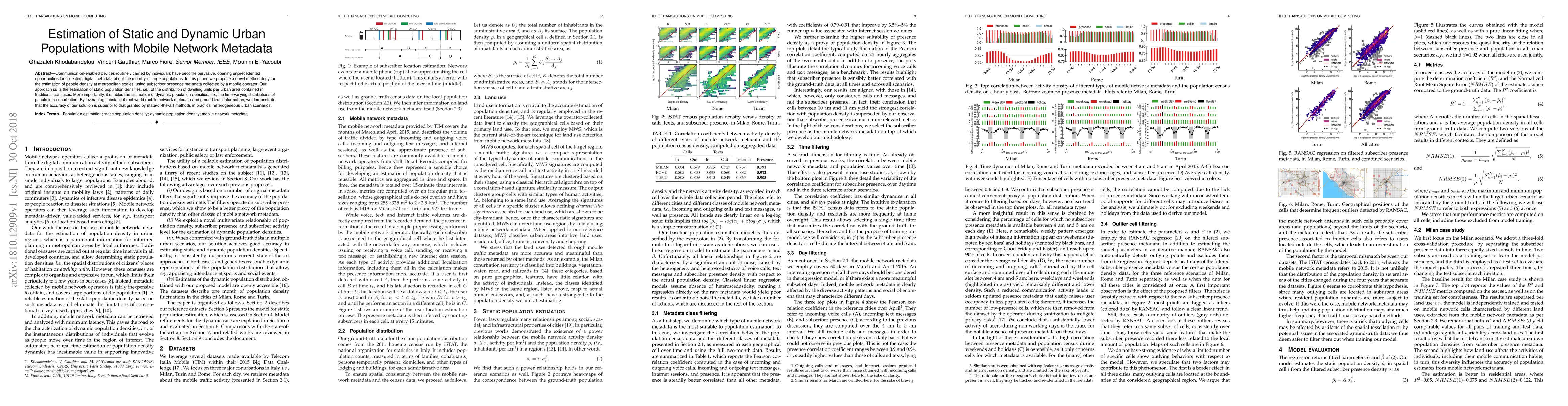 This paper proposes a novel methodology for estimating both static and dynamic urban population densities using mobile network subscriber presence data. The method outperforms existing techniques by leveraging real-world mobile metadata and ground-truth data for accurate metropolitan-scale population density estimation.