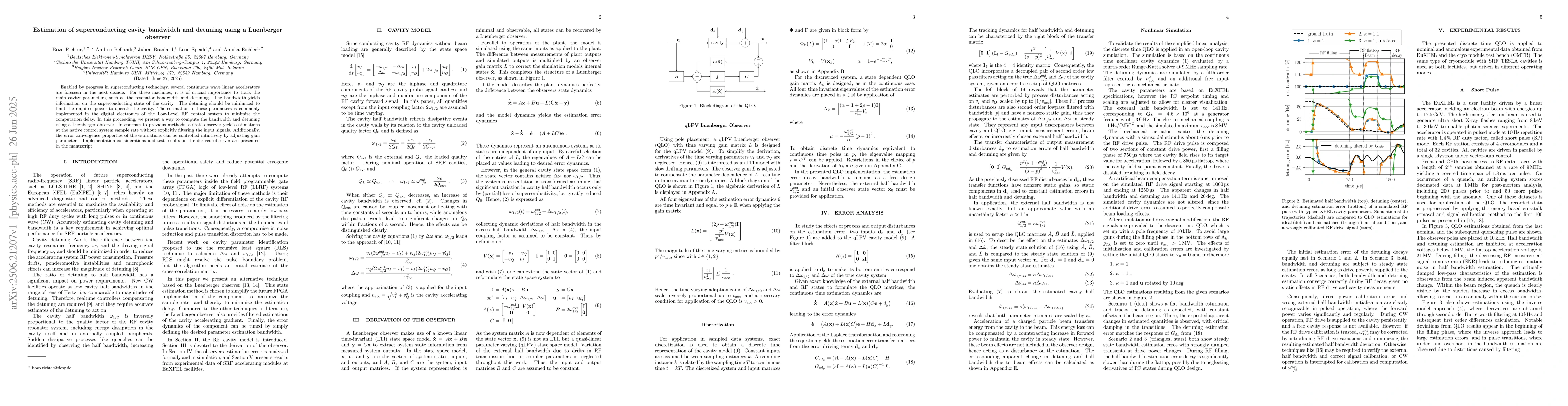 The research develops a Luenberger observer-based method to estimate superconducting cavity bandwidth and detuning directly from RF signals at the native control system sample rate, avoiding explicit filtering of input signals.