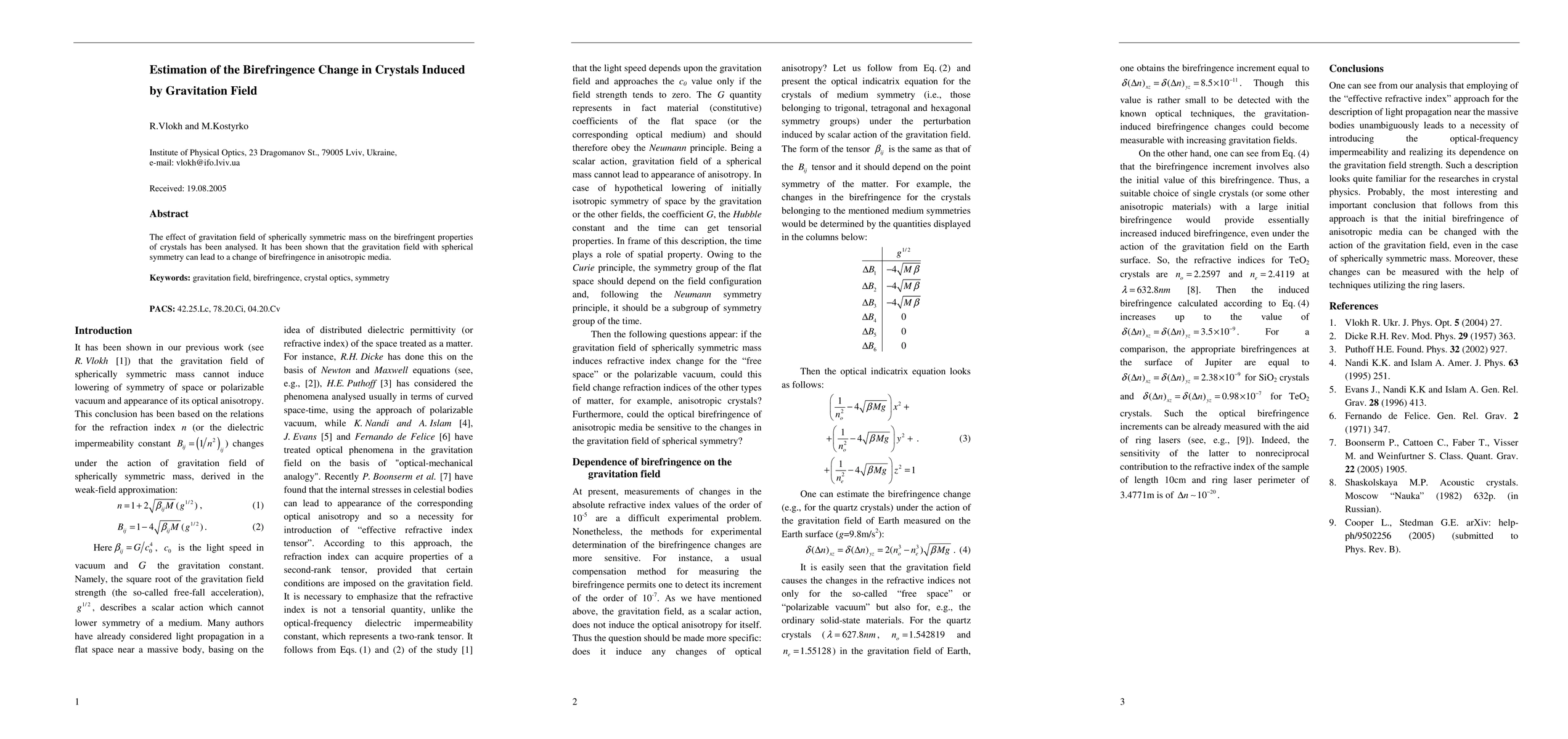 This work presents a novel connection between gravitation fields and birefringence in crystals, which expands our understanding of the behavior of matter under extreme conditions.