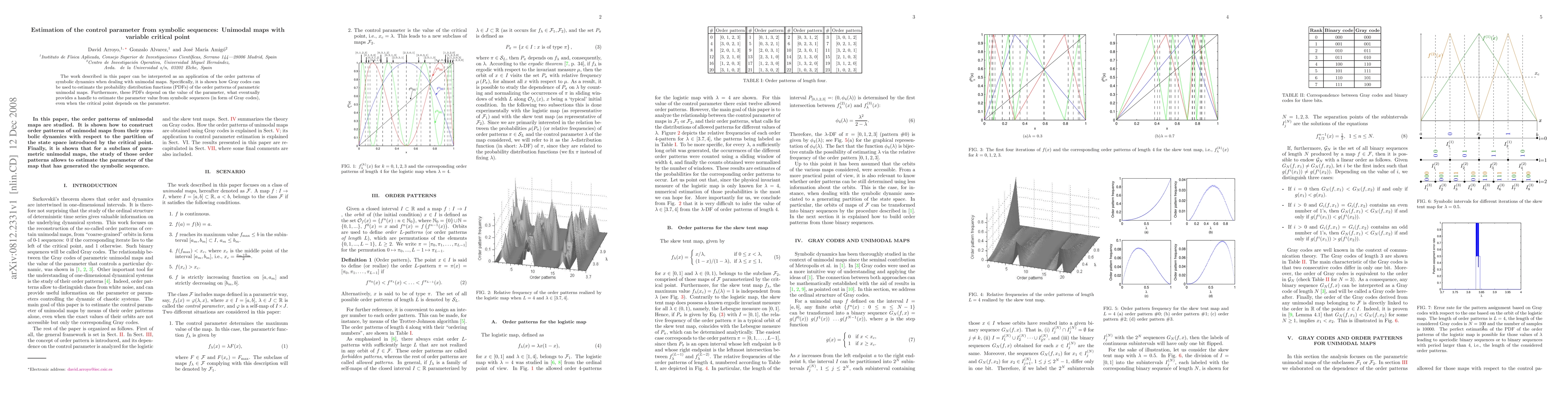 This paper applies symbolic dynamics to estimate control parameters in unimodal maps, using Gray codes to determine probability distribution functions (PDFs) of order patterns. The dependence of these PDFs on the parameter value allows for the estimation of the parameter even when the critical point varies.