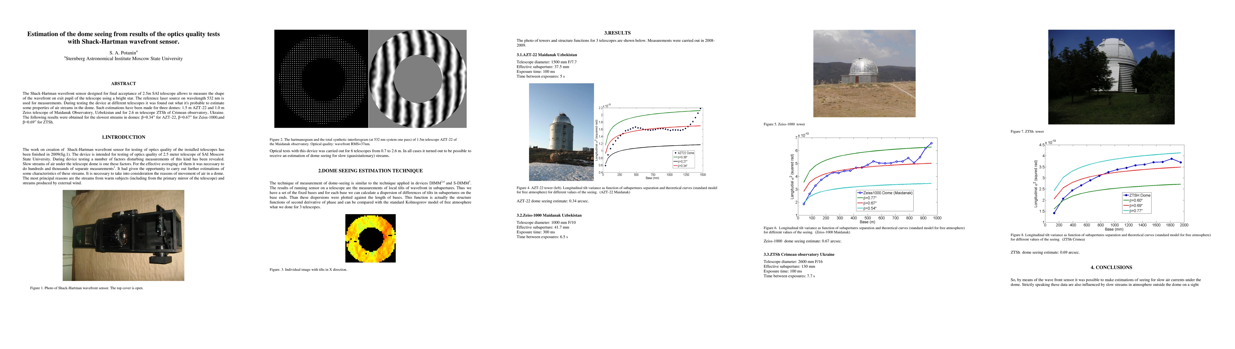 The Shack-Hartman wavefront sensor designed for final acceptance of 2.5m SAI telescope allows to measure the shape of the wavefront on exit pupil of the telescope using a bright star. The reference laser source on wavelength 532 nm is used for measurements. During testing the device at different telescopes it was found out what it's probable to estimate some properties of air streams in the dome. Such estimations have been made for three domes: 1.5 m AZT-22 and 1.0 m Zeiss telescope of Maidanak Observatory, Uzbekistan and for 2.6 m telescope ZTSh of Crimean observatory, Ukraine. The following results were obtained for the slowest streams in domes: {\beta}=0.34" for AZT-22, {\beta}=0.67" for Zeiss-1000, and {\beta}=0.69" for ZTSh.