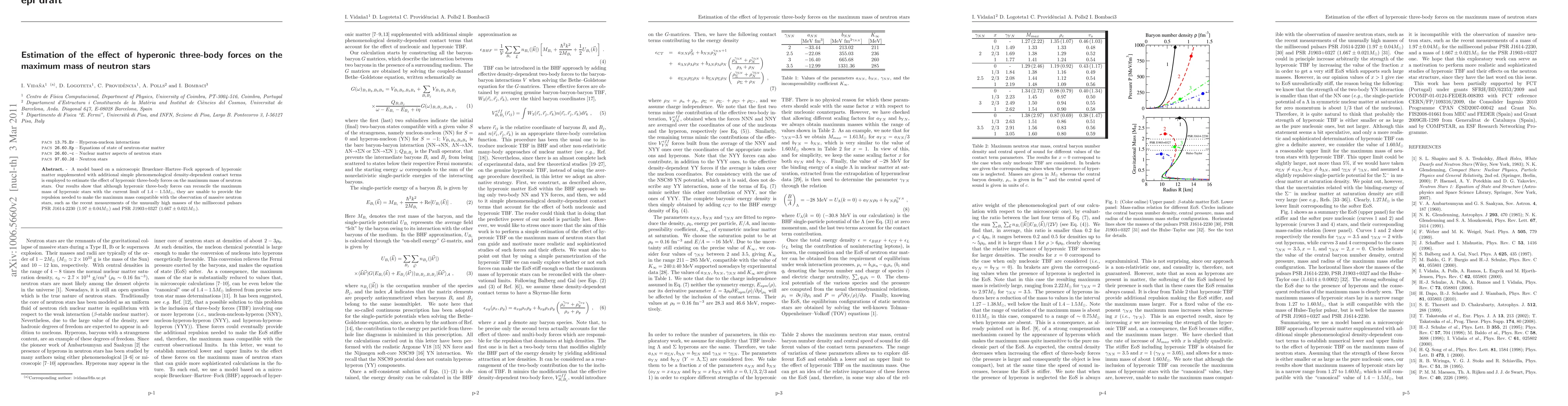 This paper estimates the impact of hyperonic three-body forces on neutron star maximum mass using a microscopic Brueckner-Hartree-Fock approach. It finds that while these forces can align with the $1.4-1.5 M_\odot$ limit, they cannot support the higher masses observed in recent massive neutron stars like PSR J1614-2230 and PSR J1903+0327.