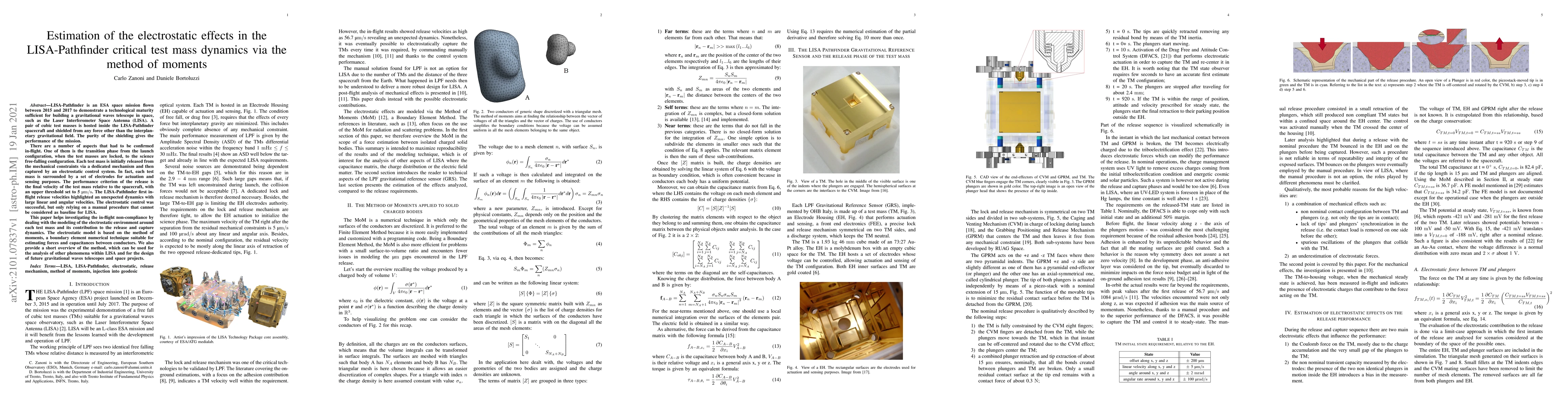 This paper investigates the unexpected dynamics observed during the LISA-Pathfinder mission's test mass release phase using the method of moments to model electrostatic effects. The study aims to understand the electrostatic environment's contribution to the test mass's release and capture dynamics, providing insights for future gravitational wave telescopes.
