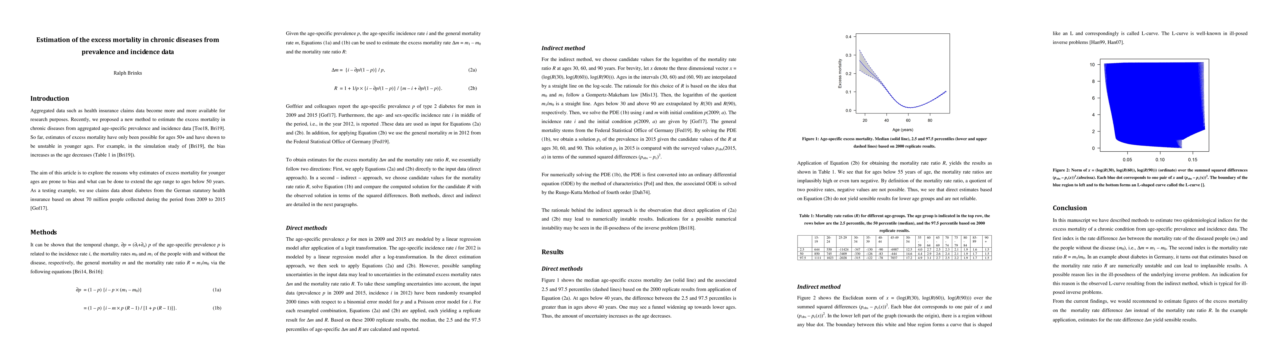 Aggregated health data such as claims data from health insurances become more and more available for research purposes. Estimates of excess mortality from prevalence and incidence of a chronic condition have only been possible for ages 50 years and older and have shown to be unstable in younger ages. The aim of this article is to explore the reasons why estimates of excess mortality for younger ages are prone to bias and what can be done to extend the age range to ages below 50 years.