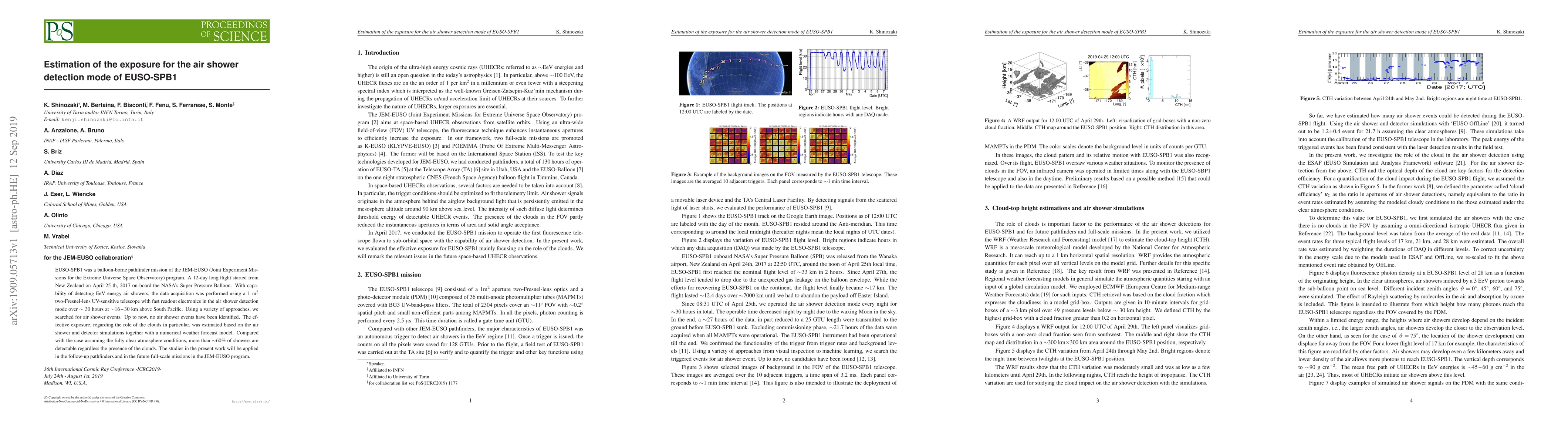 This paper estimates the exposure for EUSO-SPB1's air shower detection mode, revealing that despite cloud cover, over 60% of air showers remain detectable. The study, conducted during a 12-day balloon flight, informs future missions in the JEM-EUSO program.