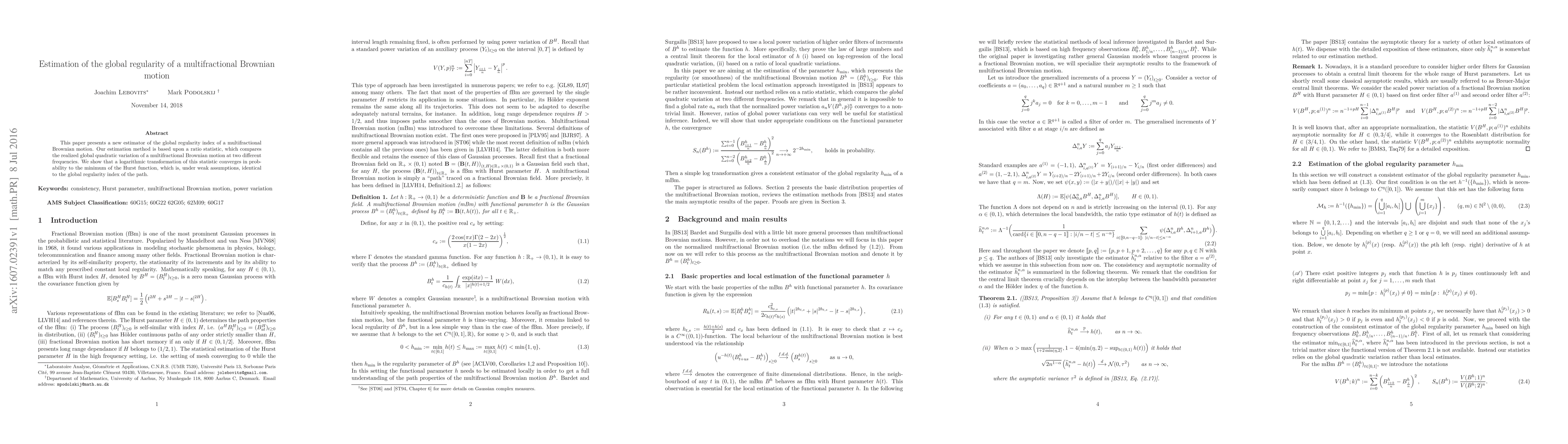 This paper introduces a new estimator for the global regularity index of multifractional Brownian motion using a ratio statistic based on global quadratic variation at different frequencies. The logarithmic transformation of this statistic converges to the minimum of the Hurst function, which approximates the global regularity index under mild assumptions.