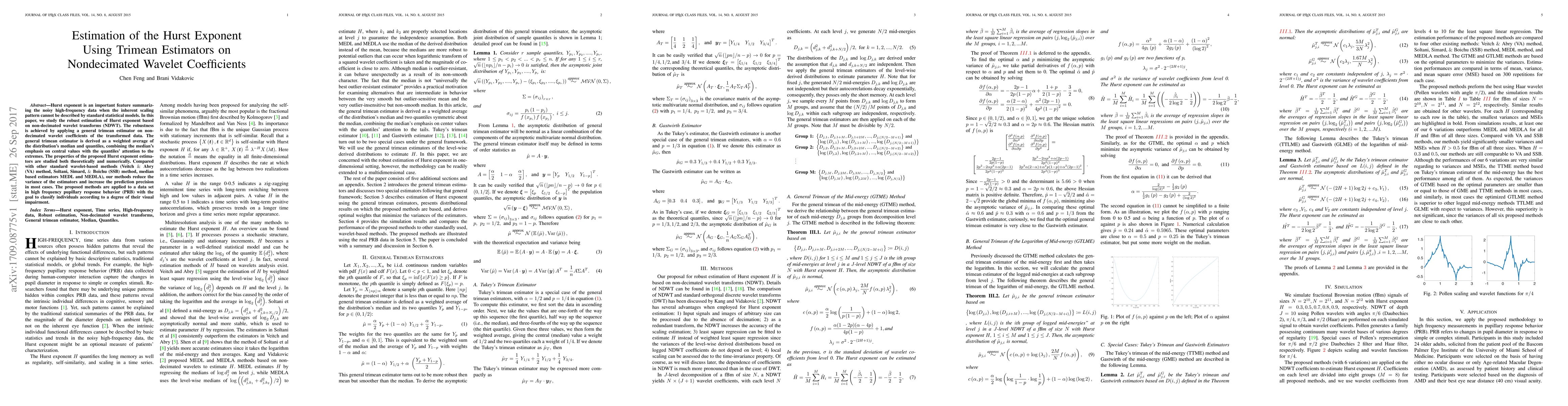 This paper proposes a robust method for estimating the Hurst exponent using a trimean estimator on non-decimated wavelet coefficients, which reduces estimator variance and improves prediction precision compared to other wavelet-based methods. The method is applied to classify individuals based on their visual impairment from high-frequency pupillary response behavior data.