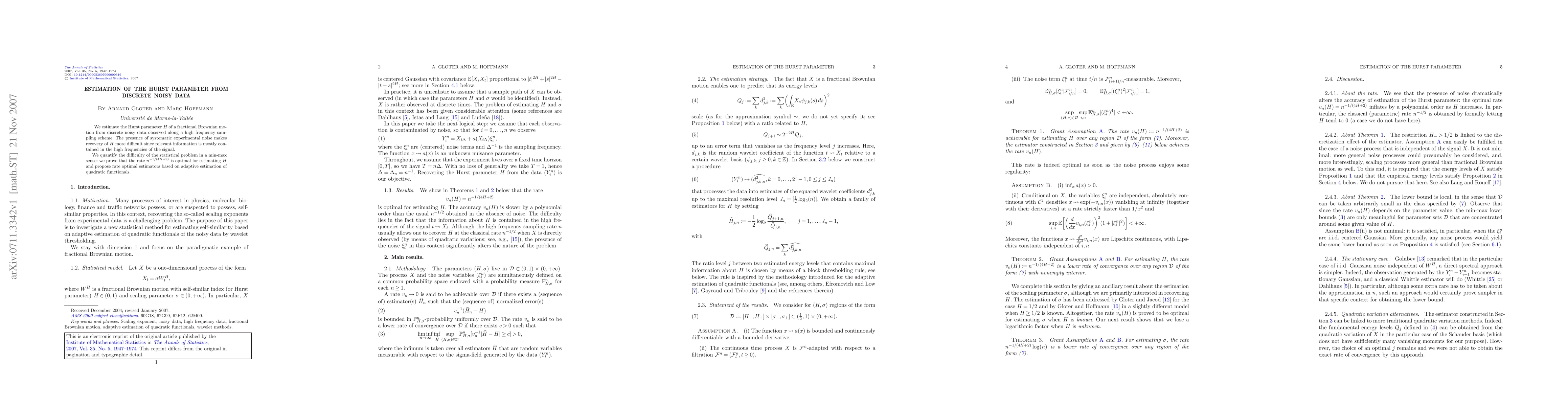 This paper estimates the Hurst parameter from noisy data using a high-frequency sampling scheme, proposing a rate-optimal estimator based on adaptive quadratic functionals, and showing that the optimal rate of estimation is $n^{-1/(4H+2)}$.
