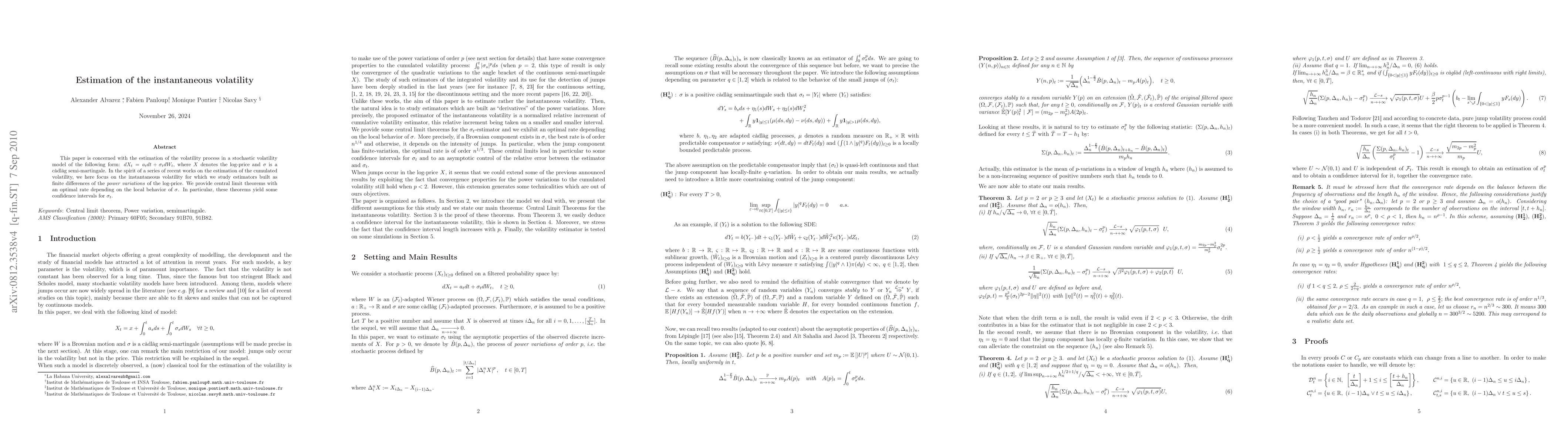 This paper estimates instantaneous volatility in a stochastic volatility model using power variations of the log-price, providing central limit theorems with optimal rates for confidence intervals.