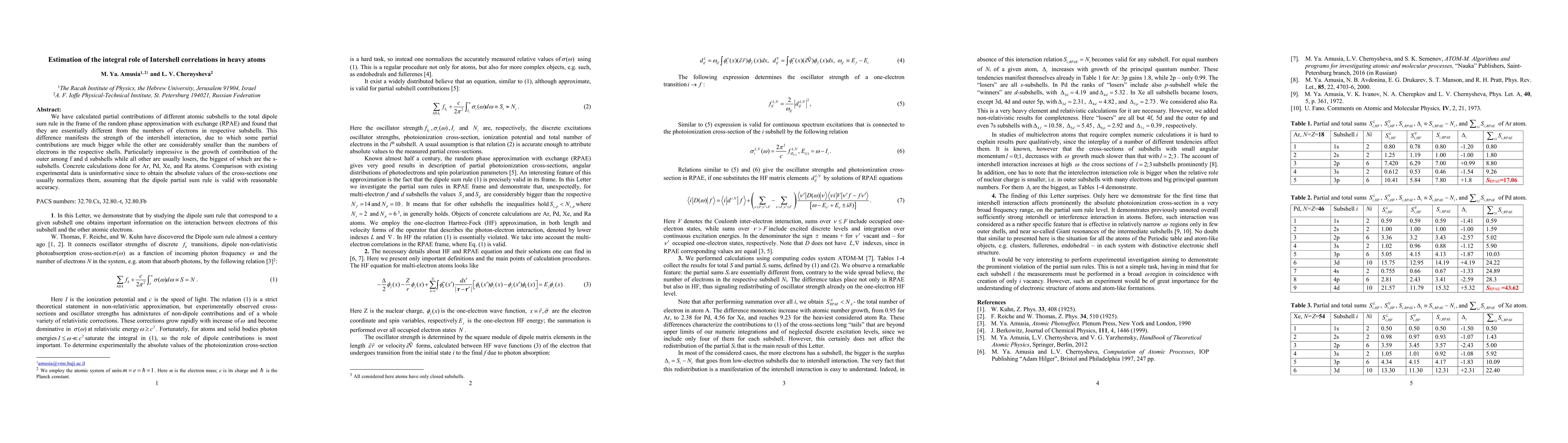 We demonstrate that in the frame of the random phase approximation with the exchange, which preserves the validity of the precise well known dipole sum rule, the partial contributions for given subshells strongly deviates from the number of electrons in these subshells. This demonstrates strong effects of intershell interaction in atoms.