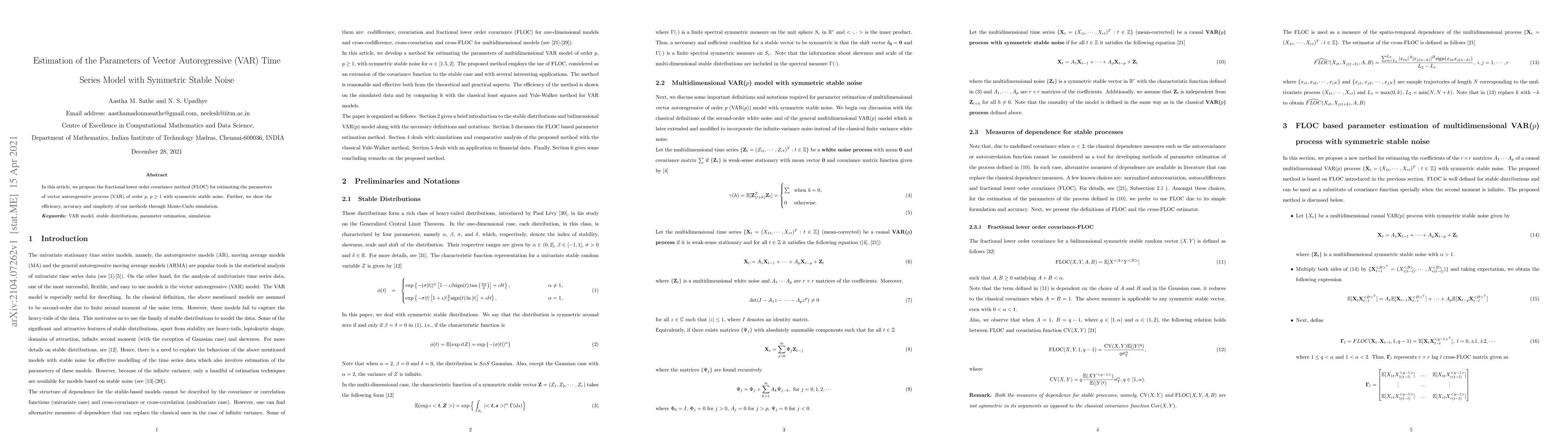 Researchers propose a new method to estimate parameters of vector autoregressive time series models with symmetric stable noise, offering improved efficiency, accuracy, and simplicity through Monte-Carlo simulation.