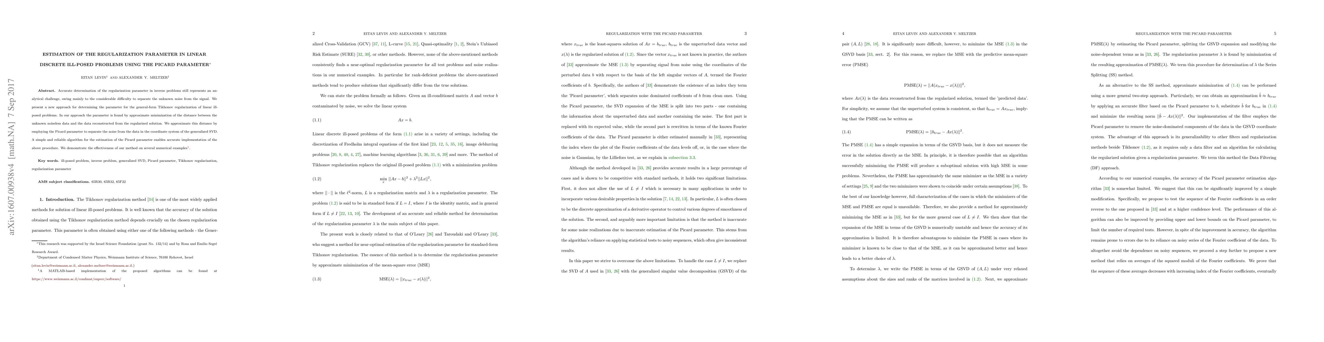 This paper proposes a novel method for determining the regularization parameter in linear ill-posed problems using the Picard parameter, which approximates the distance between noiseless data and reconstructed data. The effectiveness of the method is demonstrated through numerical examples, with a MATLAB implementation available for practical use.