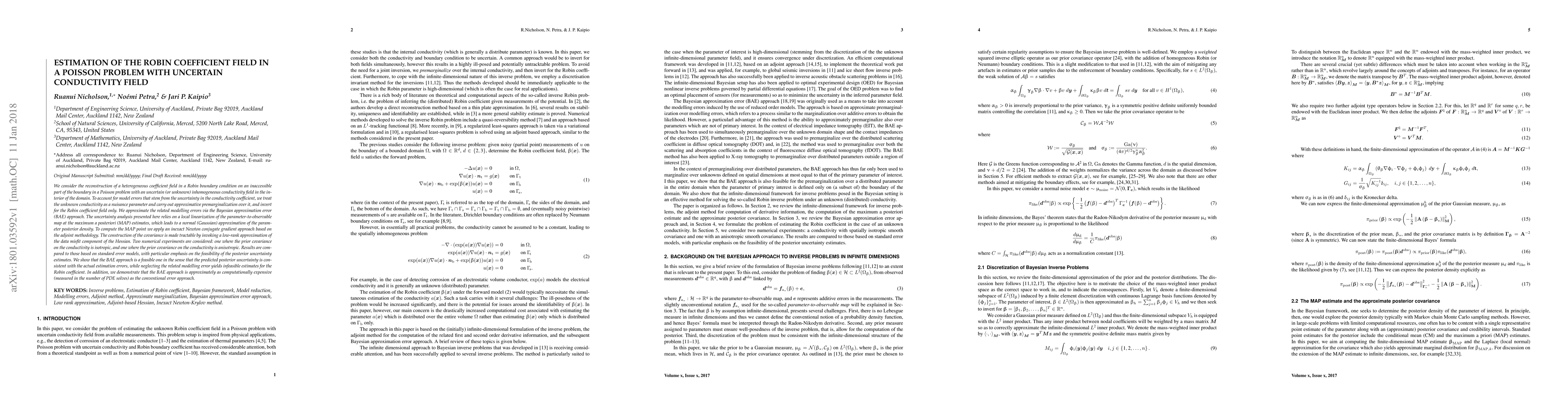 We consider the reconstruction of a heterogeneous coefficient field in a Robin boundary condition on an inaccessible part of the boundary in a Poisson problem with an uncertain (or unknown) inhomogeneous conductivity field in the interior of the domain. To account for model errors that stem from the uncertainty in the conductivity coefficient, we treat the unknown conductivity as a nuisance parameter and carry out approximative premarginalization over it, and invert for the Robin coefficient field only. We approximate the related modelling errors via the Bayesian approximation error (BAE) approach. The uncertainty analysis presented here relies on a local linearization of the parameter-to-observable map at the maximum a posteriori (MAP) estimates, which leads to a normal (Gaussian) approximation of the parameter posterior density. To compute the MAP point we apply an inexact Newton conjugate gradient approach based on the adjoint methodology. The construction of the covariance is made tractable by invoking a low-rank approximation of the data misfit component of the Hessian. Two numerical experiments are considered: one where the prior covariance on the conductivity is isotropic, and one where the prior covariance on the conductivity is anisotropic. Results are compared to those based on standard error models, with particular emphasis on the feasibility of the posterior uncertainty estimates. We show that the BAE approach is a feasible one in the sense that the predicted posterior uncertainty is consistent with the actual estimation errors, while neglecting the related modelling error yields infeasible estimates for the Robin coefficient. In addition, we demonstrate that the BAE approach is approximately as computationally expensive (measured in the number of PDE solves) as the conventional error approach.