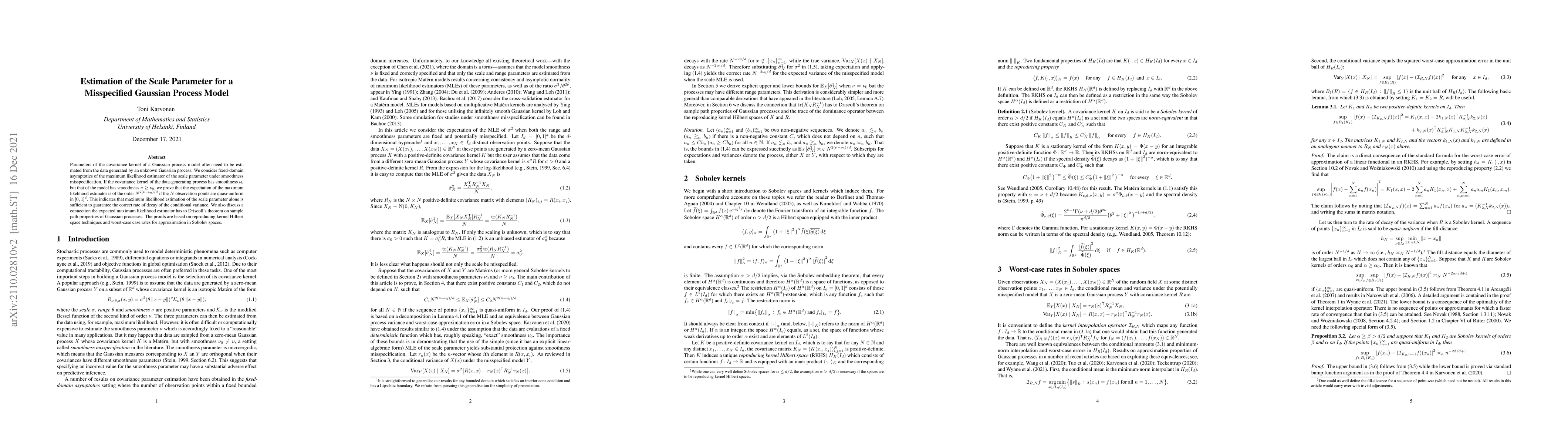 Researchers estimate that when modeling a Gaussian process with an incorrect smoothness level, the maximum likelihood estimator of its scale parameter has a certain rate of decay, which is sufficient to guarantee correct behavior.
