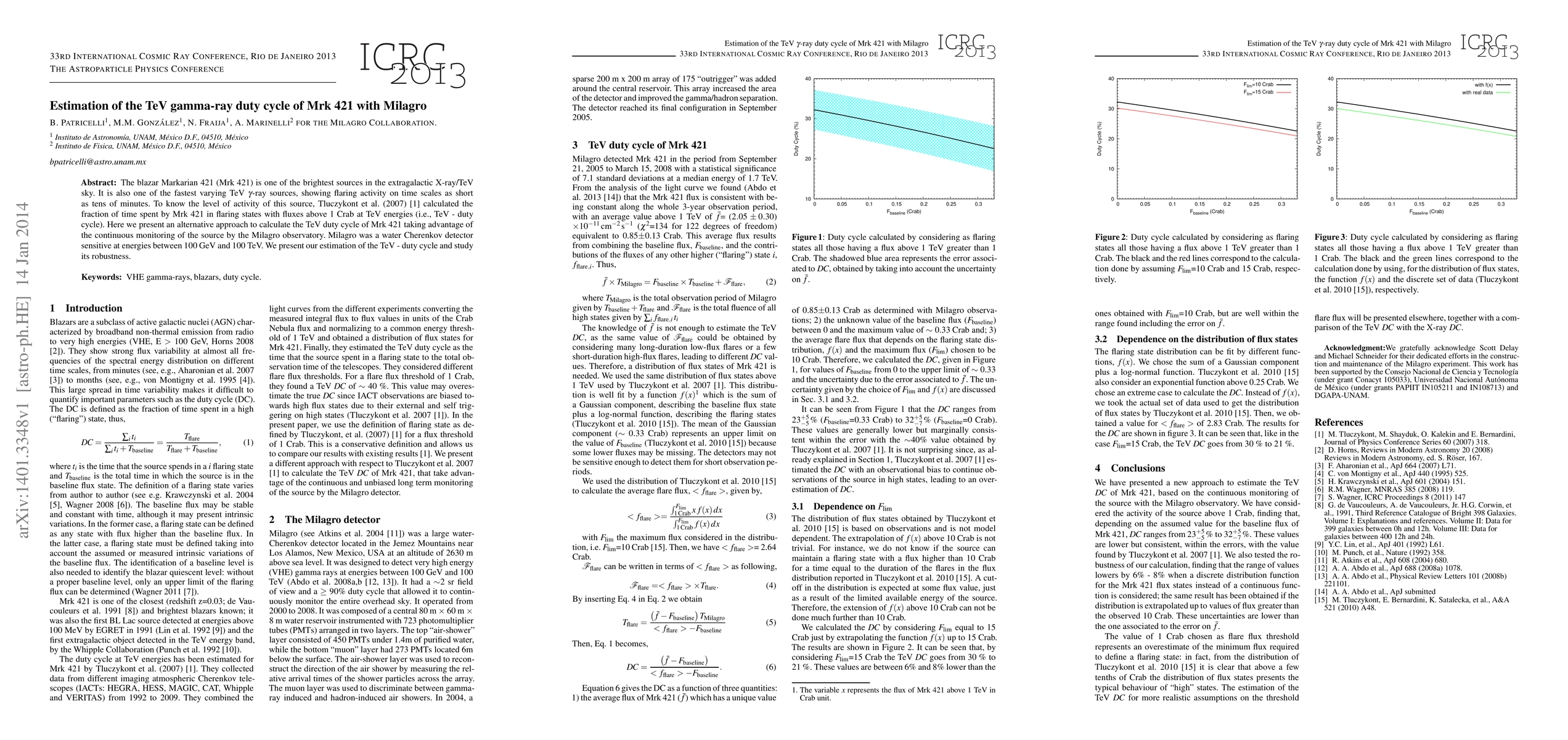 This paper estimates Mrk 421's TeV gamma-ray duty cycle using continuous monitoring data from the Milagro observatory, providing insights into the source's activity levels.