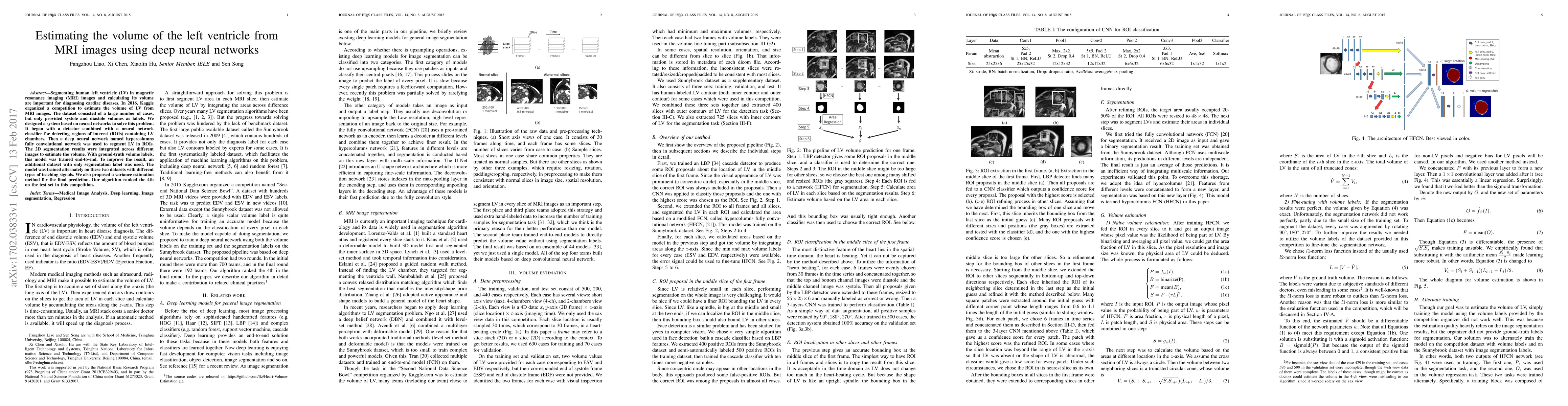This paper presents a deep neural network system for estimating the left ventricle volume from MRI images, combining region detection, segmentation, and volume integration techniques. The model achieved 4th place in a Kaggle competition, demonstrating effective segmentation and volume estimation using neural networks.