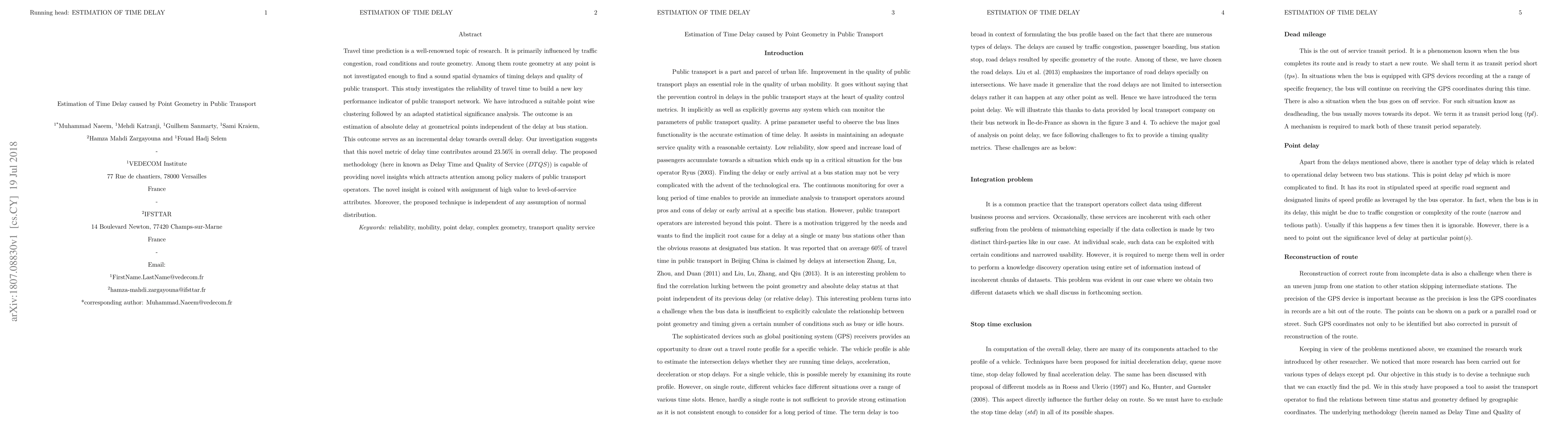 This study introduces a new metric for estimating time delay caused by point geometry in public transport, revealing that it contributes 23.56% to overall delay, providing insights for policy makers.