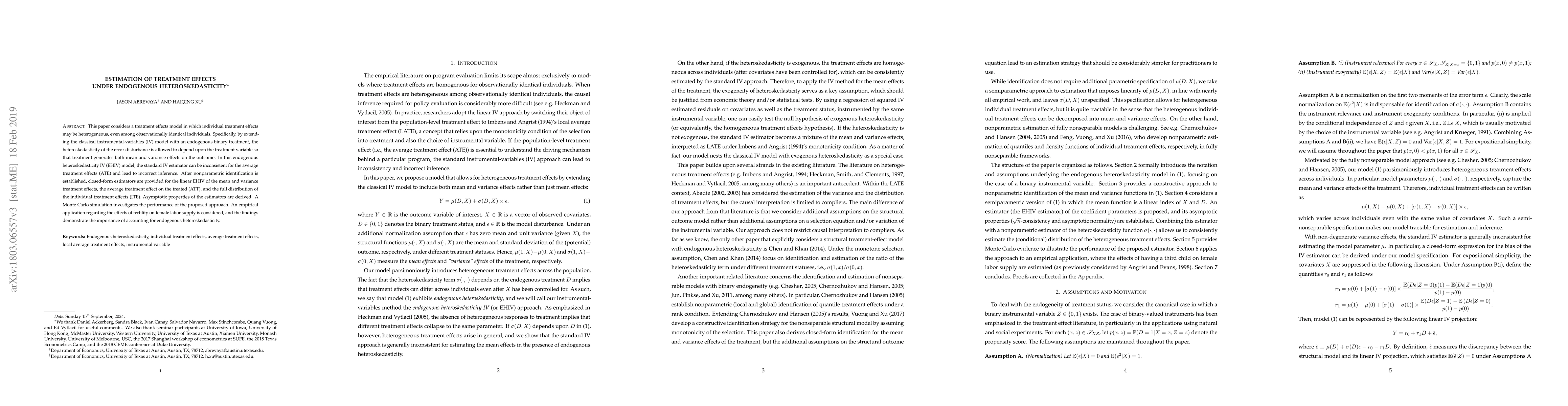 This paper develops a treatment effect model accommodating heterogeneous treatment impacts under endogenous heteroskedasticity, extending the classical IV model. It introduces closed-form estimators for mean and variance treatment effects and assesses their performance through Monte Carlo simulations and an empirical study on fertility's impact on female labor supply.