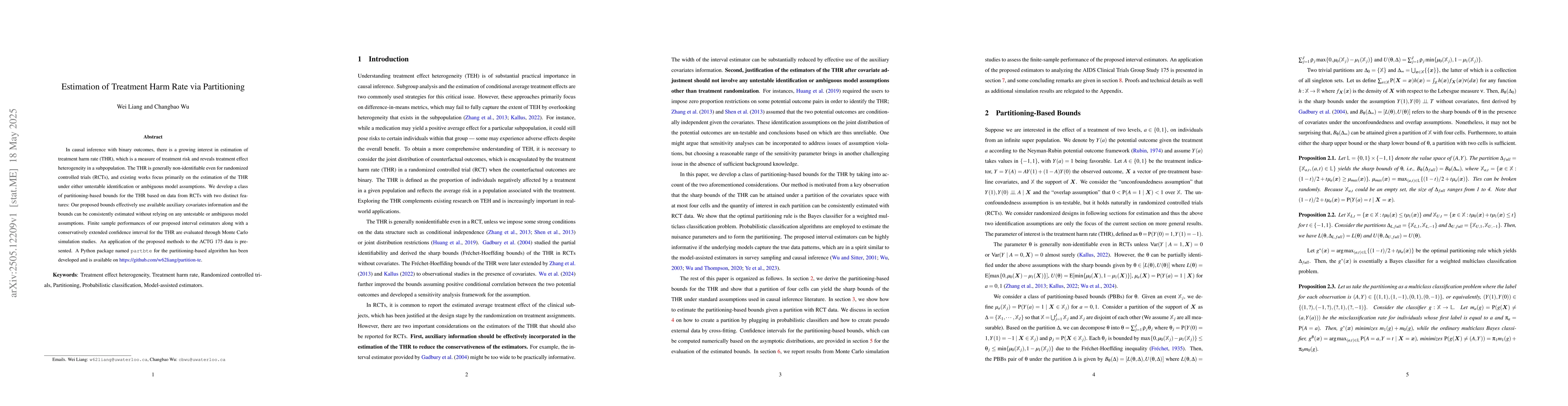 The research develops partitioning-based bounds for the Treatment Harm Rate (THR) using data from Randomized Controlled Trials (RCTs), effectively incorporating auxiliary covariates without relying on untestable or ambiguous model assumptions.