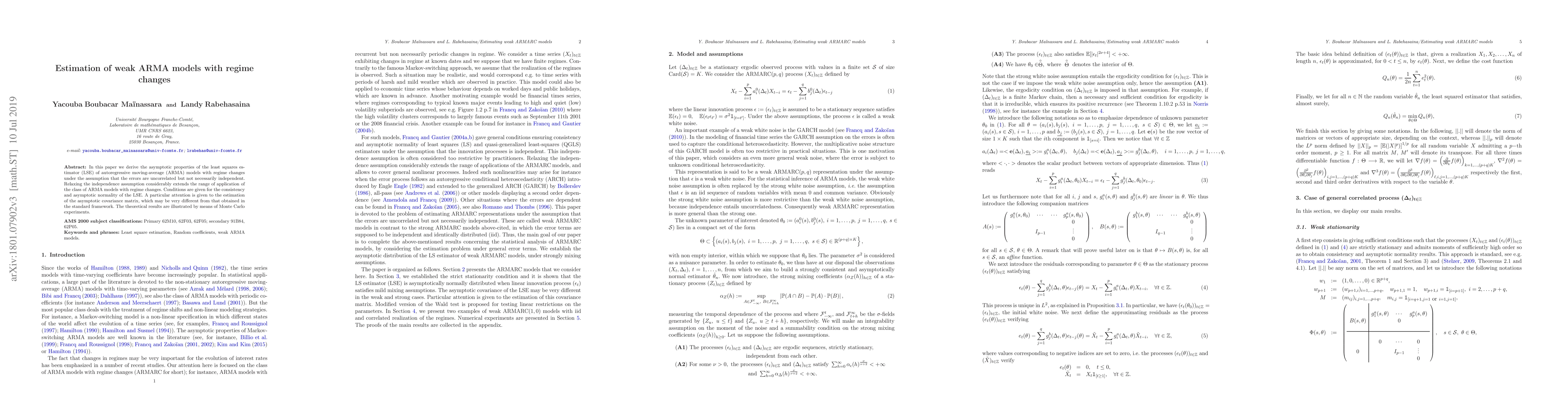 In this paper we derive the asymptotic properties of the least squares estimator (LSE) of autoregressive moving-average (ARMA) models with regime changes under the assumption that the errors are uncorrelated but not necessarily independent. Relaxing the independence assumption considerably extends the range of application of the class of ARMA models with regime changes. Conditions are given for the consistency and asymptotic normality of the LSE. A particular attention is given to the estimation of the asymptotic covariance matrix, which may be very different from that obtained in the standard framework. The theoretical results are illustrated by means of Monte Carlo experiments.