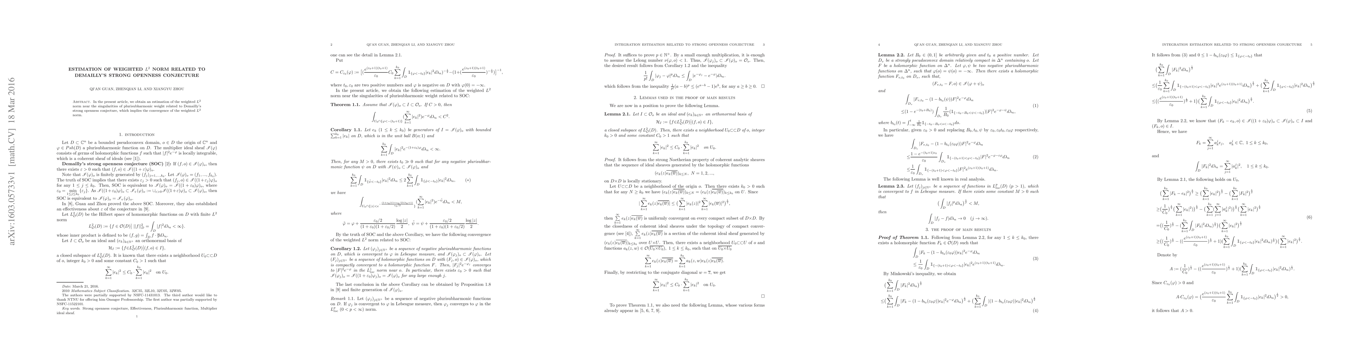 This paper provides an estimation of the weighted $L^2$ norm near singularities associated with plurisubharmonic weights relevant to Demailly's strong openness conjecture, demonstrating the convergence of these norms.