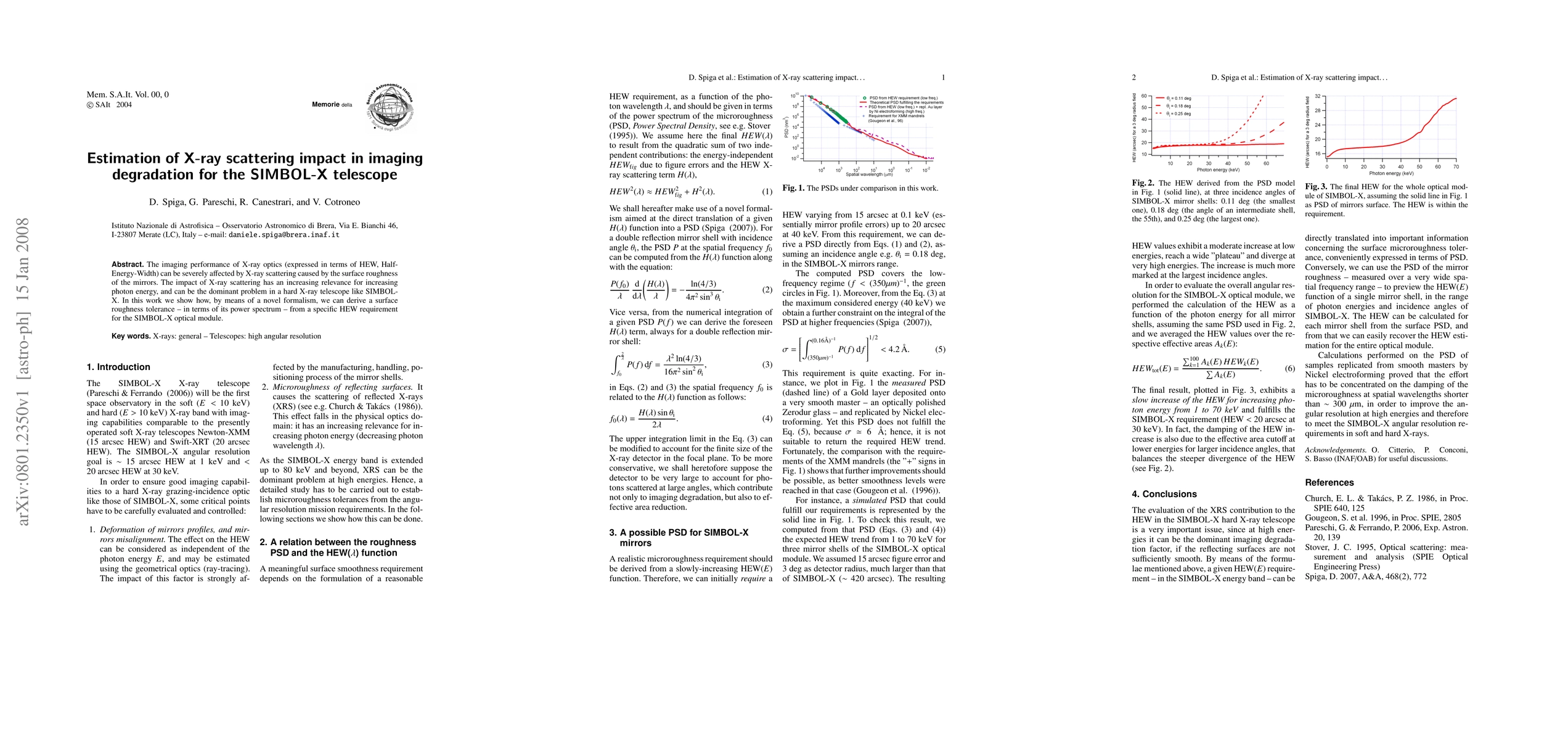 This paper investigates the degradation of imaging performance in the SIMBOL-X telescope due to X-ray scattering from mirror surface roughness, particularly at higher photon energies. It proposes a new formalism to derive surface roughness tolerances based on specific Half-Energy-Width requirements for the telescope's optical module.