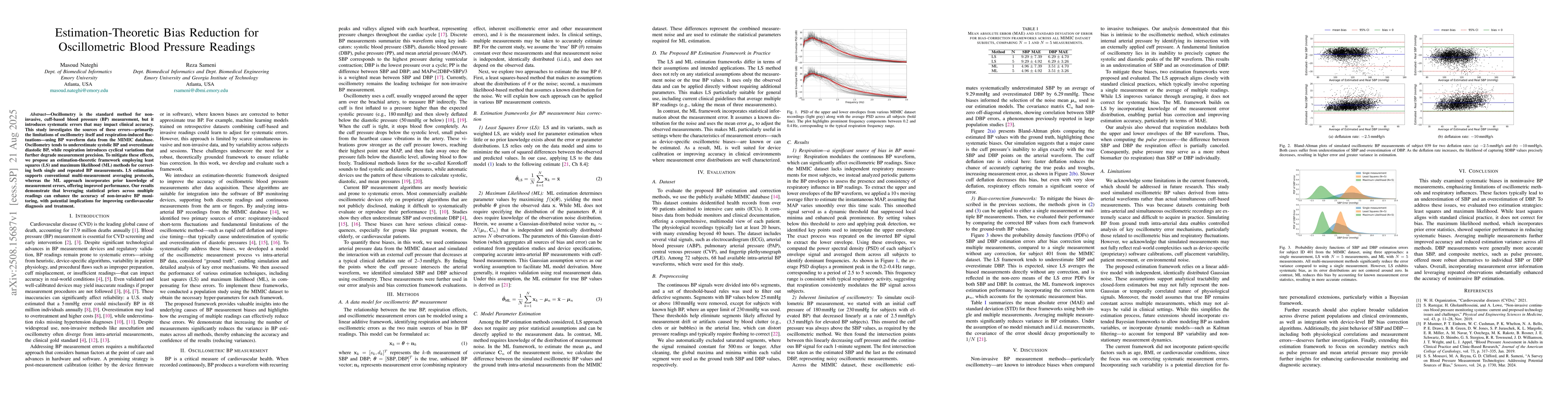 Oscillometry is the standard method for non-invasive, cuff-based blood pressure (BP) measurement, but it introduces systematic errors that may impact clinical accuracy. This study investigates the sources of these errors--primarily the limitations of oscillometry itself and respiration-induced fluctuations--using BP waveform data from the MIMIC database. Oscillometry tends to underestimate systolic BP and overestimate diastolic BP, while respiration introduces cyclical variations that further degrade measurement precision. To mitigate these effects, we propose an estimation-theoretic framework employing least squares (LS) and maximum likelihood (ML) methods for correcting both single and repeated BP measurements. LS estimation supports conventional multi-measurement averaging protocols, whereas the ML approach incorporates prior knowledge of measurement errors, offering improved performance. Our results demonstrate that leveraging statistical priors across multiple readings can enhance the accuracy of non-invasive BP monitoring, with potential implications for improving cardiovascular diagnosis and treatment.