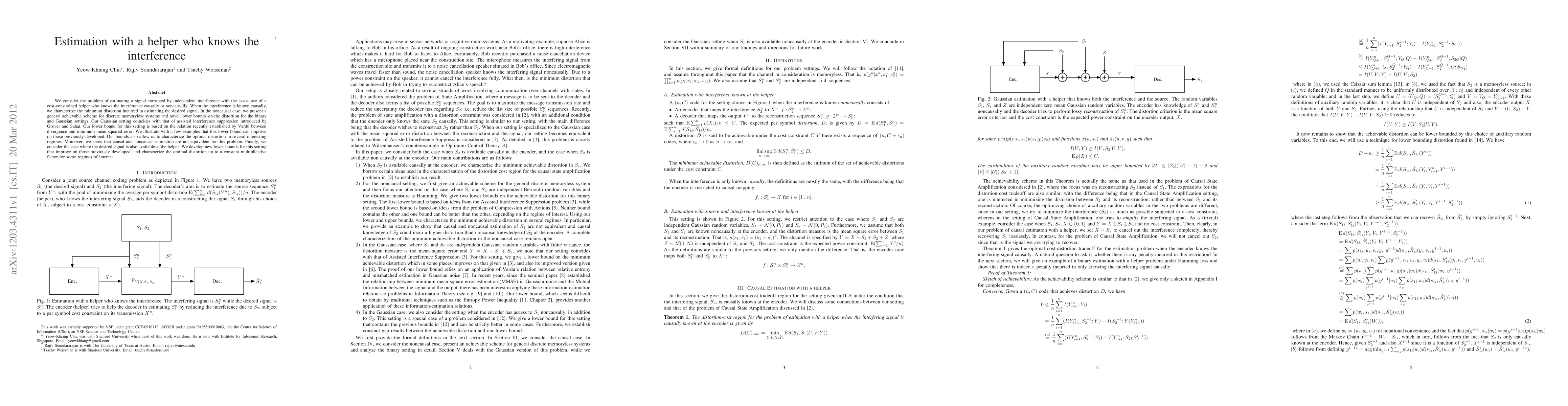 Researchers develop new methods for estimating signals corrupted by interference with the help of a cost-constrained helper who knows the interference. Their work establishes lower bounds on distortion for different scenarios, improving existing results.