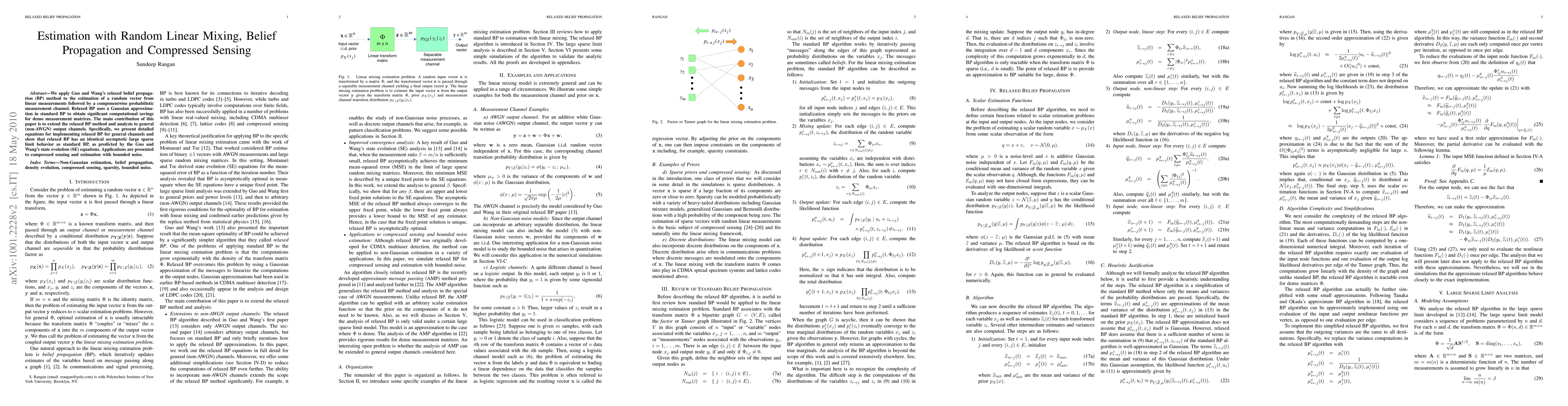 Researchers apply relaxed belief propagation to estimate random vectors from linear measurements with non-AWGN channels, achieving identical asymptotic behavior as standard BP.