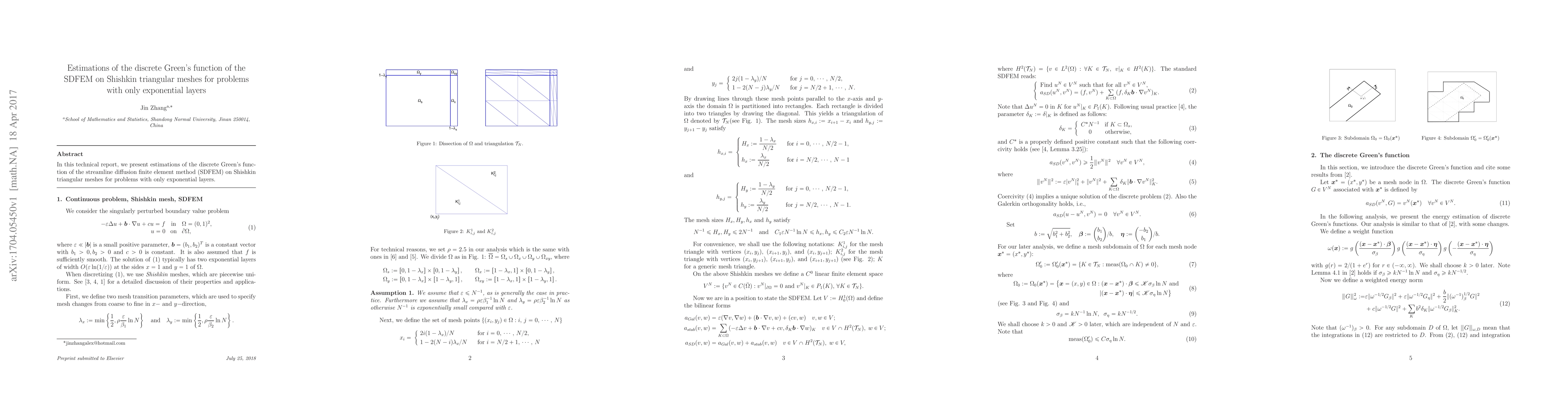 In this technical report, we present estimations of the discrete Green's function of the streamline diffusion finite element method (SDFEM) on Shishkin triangular meshes for problems with only exponential layers.