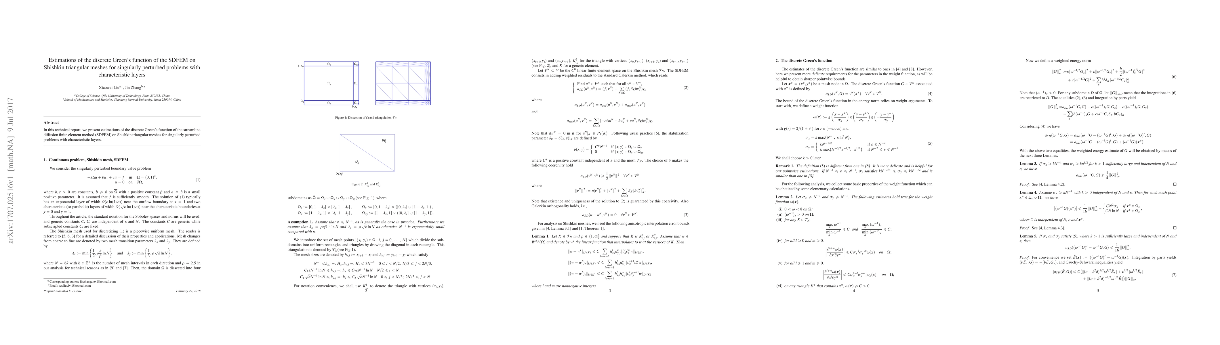 In this technical report, we present estimations of the discrete Green's function of the streamline diffusion finite element method (SDFEM) on Shishkin triangular meshes for singularly perturbed problems with characteristic layers.