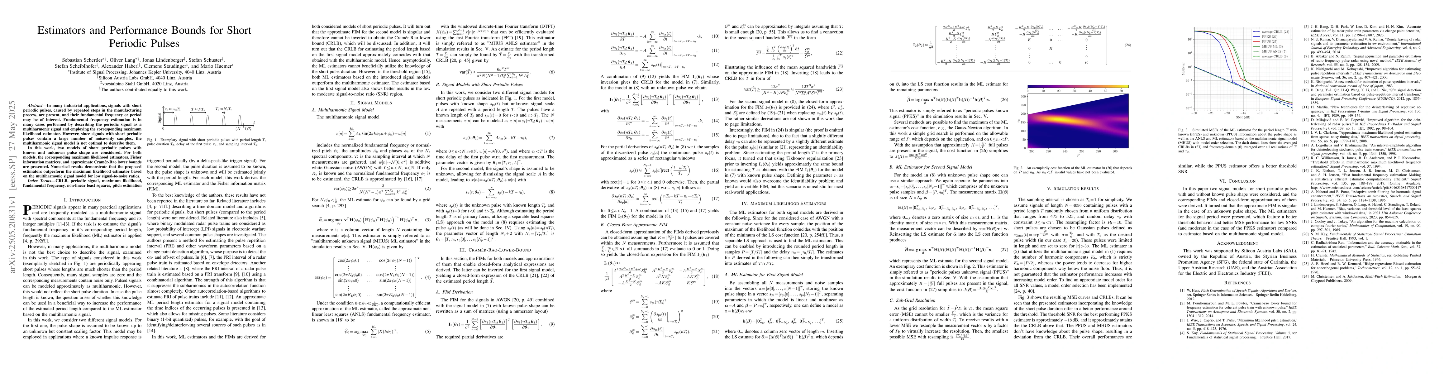 The research considers two models of short periodic pulses with known and unknown pulse shapes, deriving corresponding maximum likelihood estimators, Fisher information matrices, and approximate Cramér-Rao lower bounds.