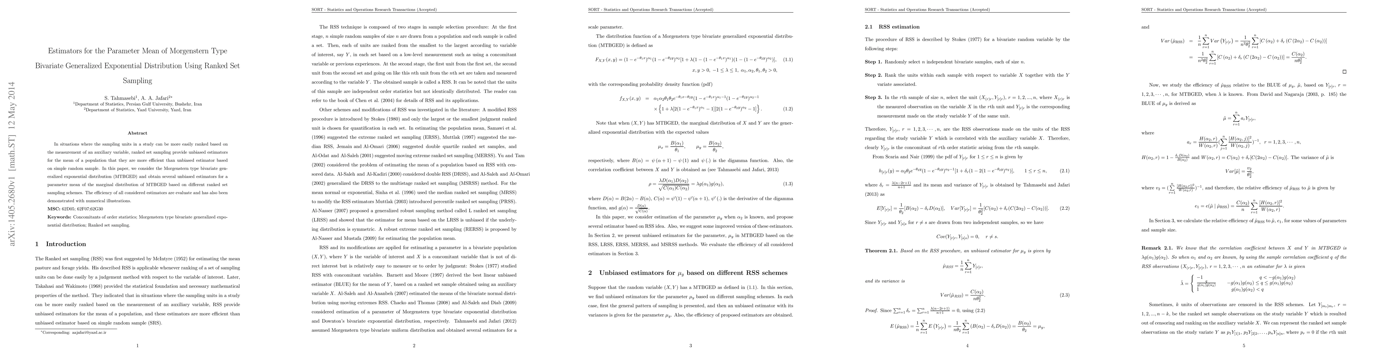 In situations where the sampling units in a study can be more easily ranked based on the measurement of an auxiliary variable, ranked set sampling provide unbiased estimators for the mean of a population that they are more efficient than unbiased estimator based on simple random sample. In this paper, we consider the Morgenstern type bivariate generalized exponential distribution (MTBGED) and obtain several unbiased estimators for a parameter mean of the marginal distribution of MTBGED based on different ranked set sampling schemes. The efficiency of all considered estimators are evaluate and has also been demonstrated with numerical illustrations.