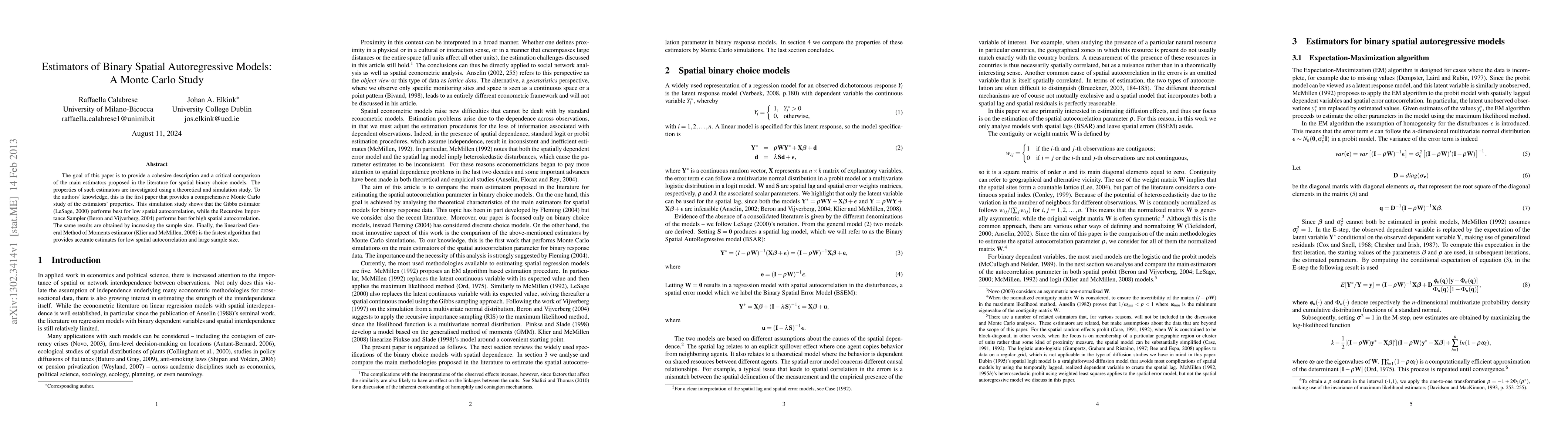 This paper compares various estimators for spatial binary choice models through a Monte Carlo simulation, finding that the Gibbs estimator works best for low spatial autocorrelation, while the Recursive Importance Sampler excels in high spatial autocorrelation scenarios. The linearized General Method of Moments estimator is noted for its speed and accuracy in large samples with low spatial autocorrelation.