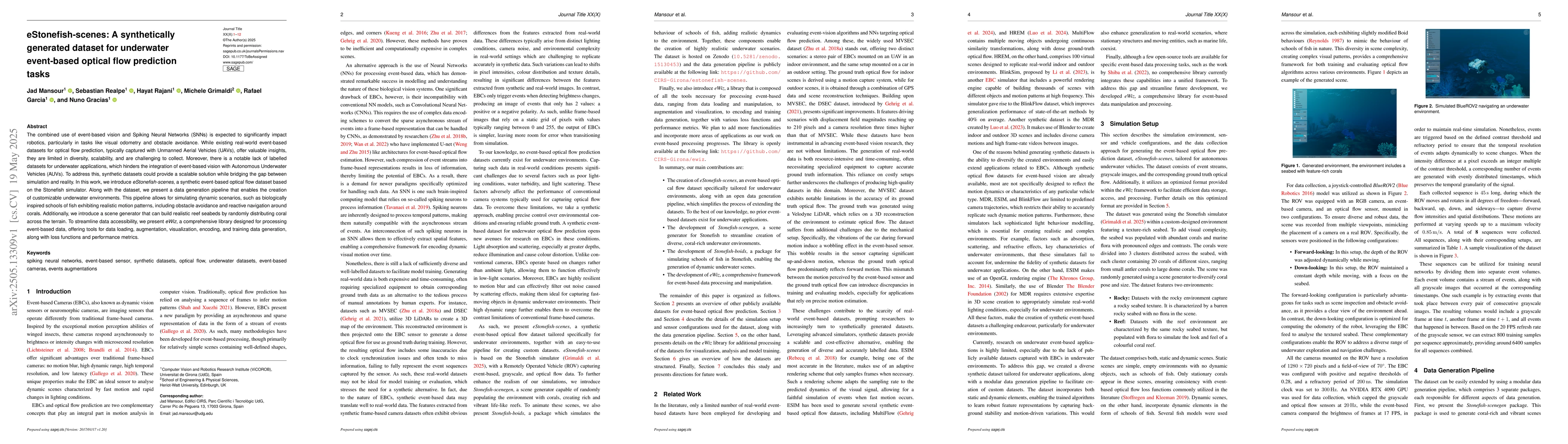 The research introduces eStonefish-scenes, a synthetic event-based optical flow dataset generated using the Stonefish simulator. It features a customizable underwater environment data generation pipeline, capable of simulating dynamic scenarios like fish schools and obstacle avoidance, along with a scene generator for realistic reef seabeds.