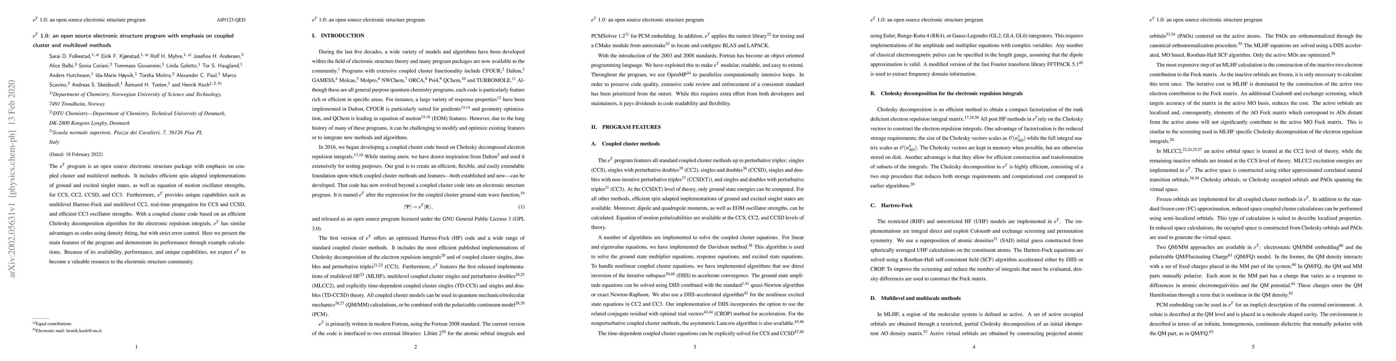 eT 1.0 is an open source electronic structure program focusing on coupled cluster and multilevel methods, offering efficient implementations for ground and excited states, and unique features like multilevel Hartree-Fock and real-time propagation. It demonstrates strong performance and potential to become a valuable tool for the electronic structure community.