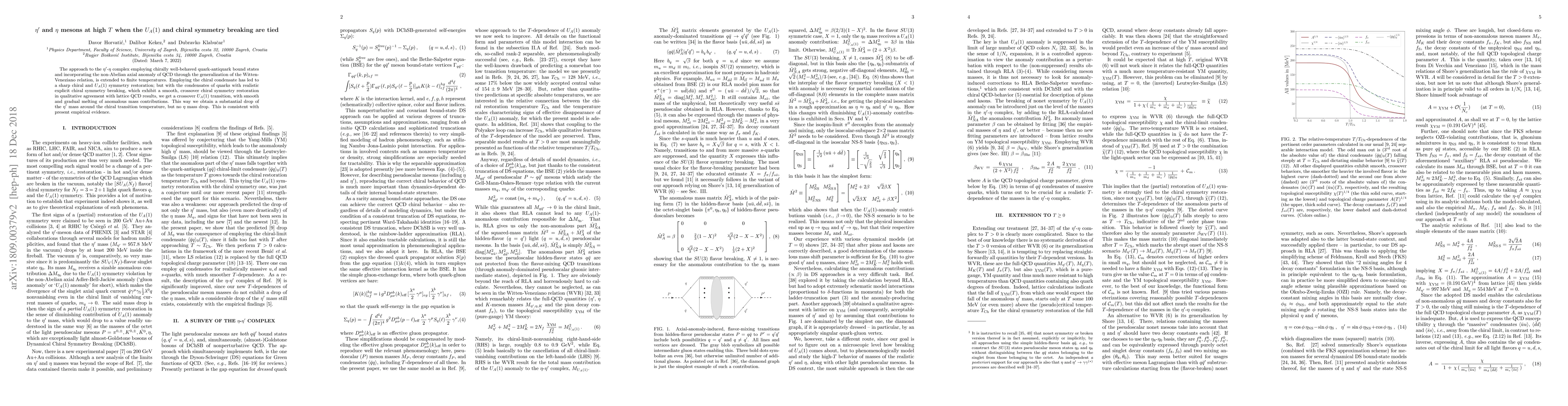 This paper extends the study of $\eta$ and $\eta'$ mesons at high temperatures, revealing a sharp chiral and U_A(1) symmetry restoration, and a substantial drop in the $\eta'$ mass near the chiral transition temperature, consistent with empirical evidence, while the $\eta$ mass remains unaffected.