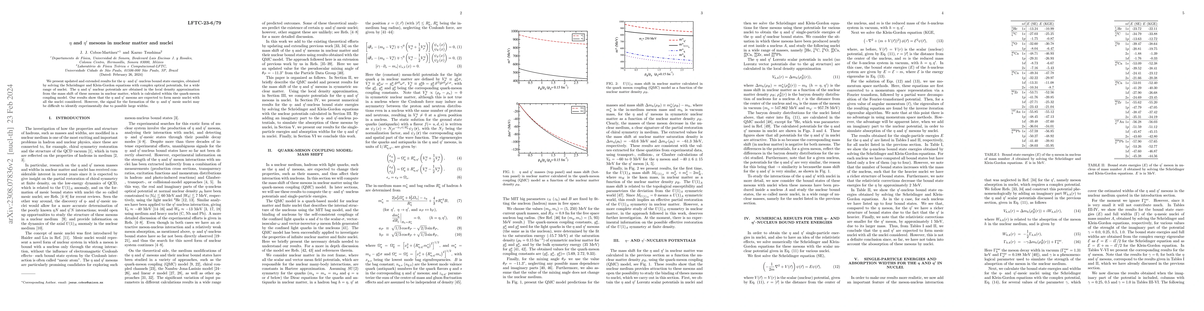 This paper updates results on the binding energies of $\eta$ and $\eta'$ mesons in various nuclei, using Schrödinger and Klein-Gordon equations with complex optical potentials. The study suggests that these mesons can form mesic nuclei, but experimental identification may be challenging due to potential large widths.