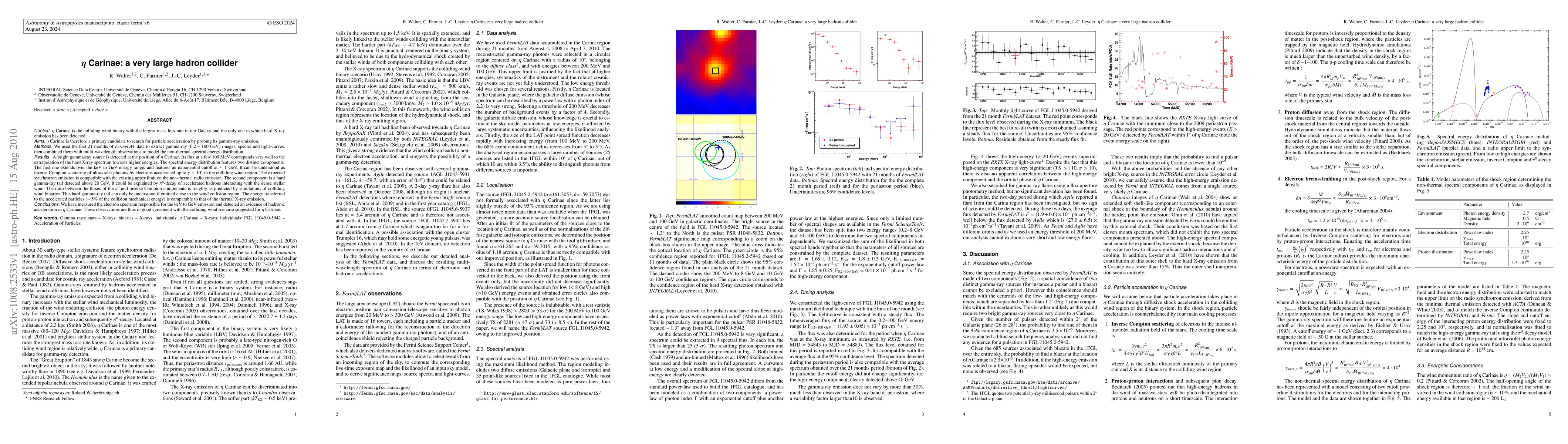 Eta Carinae is the colliding wind binary with the largest mass loss rate in our Galaxy and the only one in which hard X-ray emission has been detected. Eta Carinae is therefore a primary candidate to search for particle acceleration by probing its gamma-ray emission. We used the first 21 months of Fermi/LAT data to extract gamma-ray (0.2-100 GeV) images, spectra and light-curves, then combined them with multi-wavelength observations to model the non-thermal spectral energy distribution. A bright gamma-ray source is detected at the position of eta Carinae. Its flux at a few 100 MeV corresponds very well to the extrapolation of the hard X-ray spectrum towards higher energies. The spectral energy distribution features two distinct components. The first one extends over the keV to GeV energy range, and features an exponential cutoff at ~ 1 GeV. It can be understood as inverse Compton scattering of ultraviolet photons by electrons accelerated up to gamma~1E4 in the colliding wind region. The expected synchrotron emission is compatible with the existing upper limit on the non-thermal radio emission. The second component is a hard gamma-ray tail detected above 20 GeV. It could be explained by pi0-decay of accelerated hadrons interacting with the dense stellar wind. The ratio between the fluxes of the pi0 and inverse Compton components is roughly as predicted by simulations of colliding wind binaries. This hard gamma-ray tail can only be understood if emitted close to the wind collision region. The energy transferred to the accelerated particles (~5% of the collision mechanical energy) is comparable to that of the thermal X-ray emission. We have measured the electron spectrum responsible for the keV to GeV emission and detected an evidence of hadronic acceleration in eta Carinae. These observations are thus in good agreement with the colliding wind scenario suggested for eta Carinae.