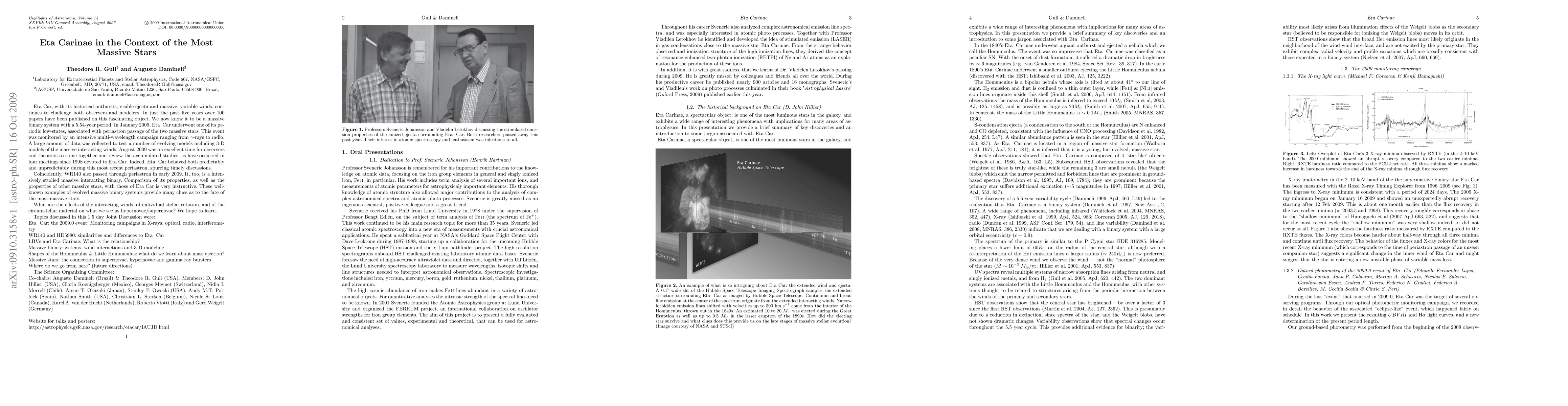 Eta Car, with its historical outbursts, visible ejecta and massive, variable winds, continues to challenge both observers and modelers. In just the past five years over 100 papers have been published on this fascinating object. We now know it to be a massive binary system with a 5.54-year period. In January 2009, Eta Car underwent one of its periodic low-states, associated with periastron passage of the two massive stars. This event was monitored by an intensive multi-wavelength campaign ranging from gamma-rays to radio. A large amount of data was collected to test a number of evolving models including 3-D models of the massive interacting winds. August 2009 was an excellent time for observers and theorists to come together and review the accumulated studies, as have occurred in four meetings since 1998 devoted to Eta Car. Indeed, Eta Car behaved both predictably and unpredictably during this most recent periastron, spurring timely discussions. Coincidently, WR140 also passed through periastron in early 2009. It, too, is a intensively studied massive interacting binary. Comparison of its properties, as well as the properties of other massive stars, with those of Eta Car is very instructive. These well-known examples of evolved massive binary systems provide many clues as to the fate of the most massive stars. What are the effects of the interacting winds, of individual stellar rotation, and of the circumstellar material on what we see as hypernovae/supernovae? We hope to learn.