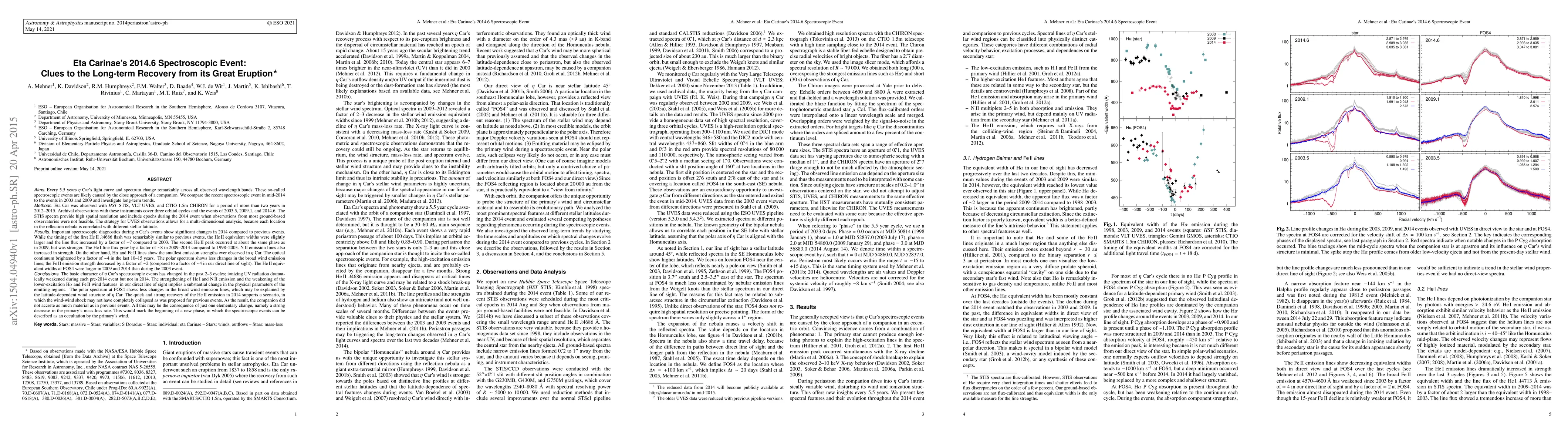Aims. Every 5.5 years eta Car's light curve and spectrum change remarkably across all observed wavelength bands. We compare the recent spectroscopic event in mid-2014 to the events in 2003 and 2009 and investigate long-term trends. Methods. Eta Car was observed with HST STIS, VLT UVES, and CTIO 1.5m CHIRON for a period of more than two years in 2012-2015. Archival observations with these instruments cover three orbital cycles. Results. Important spectroscopic diagnostics show significant changes in 2014 compared to previous events. While the timing of the first HeII 4686 flash was remarkably similar to previous events, the HeII equivalent widths were slightly larger and the line flux increased compared to 2003. The second HeII peak occurred at about the same phase as in 2009, but was stronger. The HeI line flux grew in 2009-2014 compared to 1998-2003. On the other hand, Halpha and FeII lines show the smallest emission strengths ever observed. Conclusions. The basic character of the spectroscopic events has changed in the past 2-3 cycles; ionizing UV radiation dramatically weakened during each pre-2014 event but not in 2014. The strengthening of HeI emission and the weakening of the lower-excitation wind features in our direct line of sight implies a substantial change in the physical parameters of the emitting regions. The polar spectrum at FOS4 shows less changes in the broad wind emission lines, which may be explained by the latitude-dependent wind structure of eta Car. The quick and strong recovery of the HeII emission in 2014 supports a scenario, in which the wind-wind shock may not have completely collapsed as was proposed for previous events. All this may be the consequence of just one elementary change, namely a strong decrease in the primary's mass-loss rate.