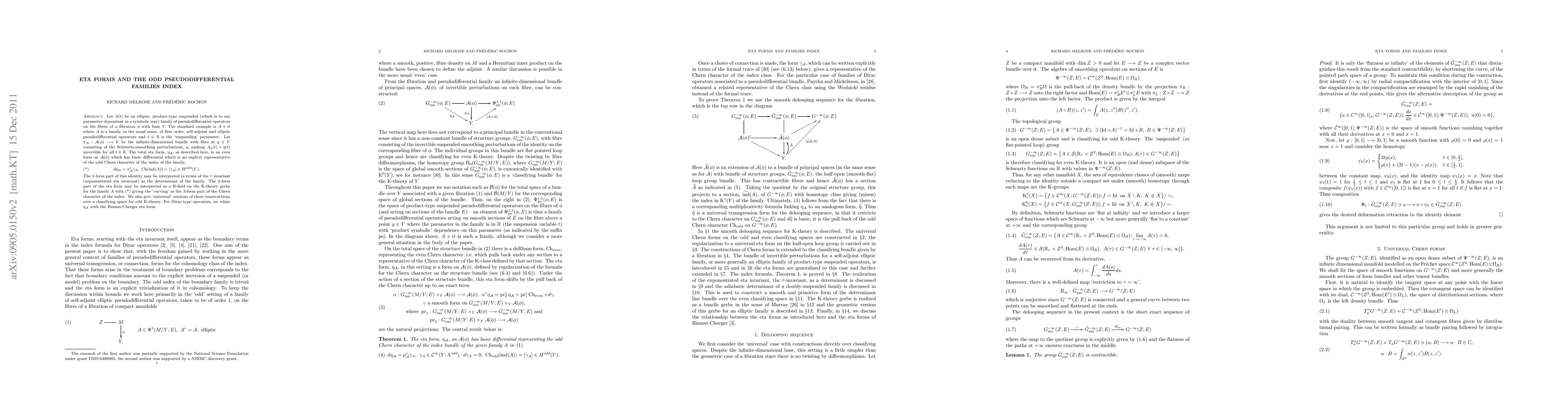 Let $A(t)$ be an elliptic, product-type suspended (which is to say parameter-dependant in a symbolic way) family of pseudodifferential operators on the fibres of a fibration $\phi$ with base $Y.$ The standard example is $A+it$ where $A$ is a family, in the usual sense, of first order, self-adjoint and elliptic pseudodifferential operators and $t\in\bbR$ is the `suspending' parameter. Let $\pi_{\cA}:\cA(\phi)\longrightarrow Y$ be the infinite-dimensional bundle with fibre at $y\in Y$ consisting of the Schwartz-smoothing perturbations, $q,$ making $A_y(t)+q(t)$ invertible for all $t\in\bbR.$ The total eta form, $\eta_{\cA},$ as described here, is an even form on $\cA(\phi)$ which has basic differential which is an explicit representative of the odd Chern character of the index of the family: % d\eta_{\cA}=\pi_{\cA}^*\gamma_A, \Ch(\ind(A))=[\gamma_{A}]\in H^{\odd}(Y). \tag{*}\label{efatoi.5} % The 1-form part of this identity may be interpreted in terms of the $\tau$ invariant (exponentiated eta invariant) as the determinant of the family. The 2-form part of the eta form may be interpreted as a B-field on the K-theory gerbe for the family $A$ with \eqref{efatoi.5} giving the `curving' as the 3-form part of the Chern character of the index. We also give `universal' versions of these constructions over a classifying space for odd K-theory. For Dirac-type operators, we relate $\eta_{\cA}$ with the Bismut-Cheeger eta form.