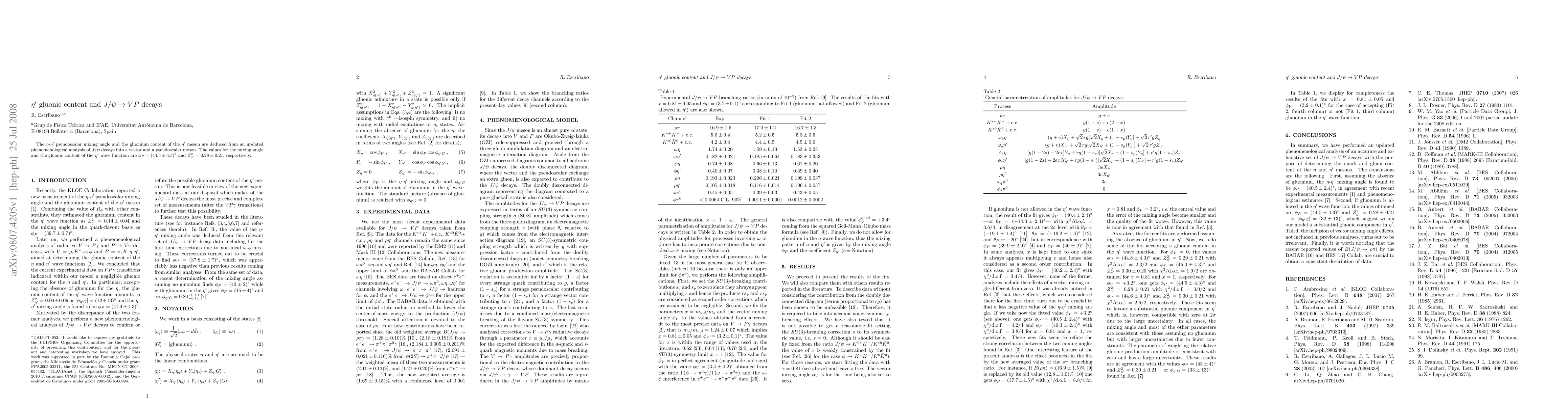 The $\eta$-$\eta^\prime$ pseudoscalar mixing angle and the gluonium content of the $\eta^\prime$ meson are deduced from an updated phenomenological analysis of $J/\psi$ decays into a vector and a pseudoscalar meson. The values for the mixing angle and the gluonic content of the $\eta^\prime$ wave function are $\phi_P=(44.5\pm 4.3)^\circ$ and $Z^2_{\eta^\prime}=0.28\pm 0.21$, respectively.