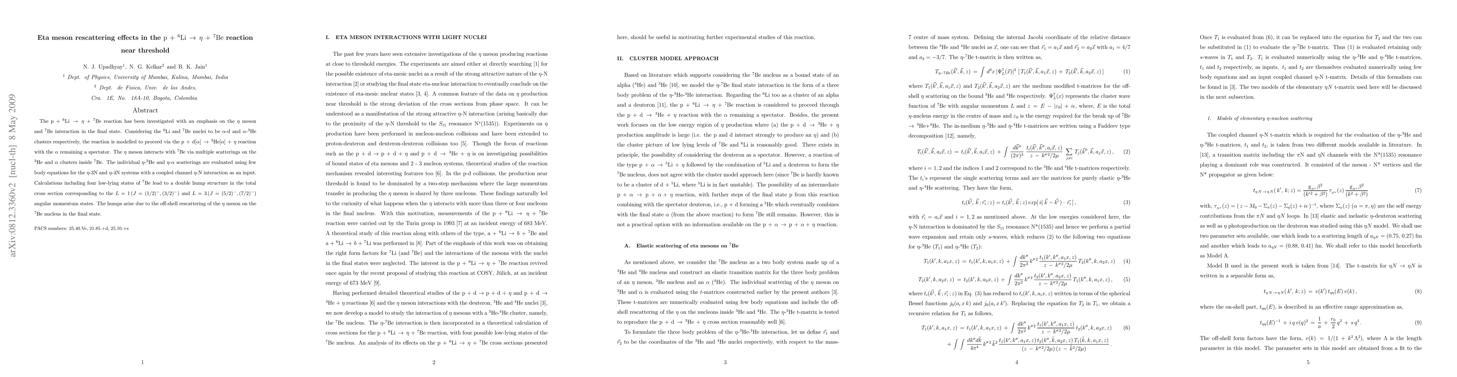 The p + 6Li --> eta + 7Be reaction has been investigated with an emphasis on the eta meson and 7Be interaction in the final state. Considering the 6Li and 7Be nuclei to be alpha-d and alpha-3He clusters respectively, the reaction is modelled to proceed via the p + d [alpha] --> 3He [\alpha] + eta reaction with the alpha remaining a spectator. The eta meson interacts with 7Be via multiple scatterings on the 3He and alpha clusters inside 7Be. The individual eta-3He and eta-alpha scatterings are evaluated using few body equations for the eta-3N and eta-4N systems with a coupled channel eta-N interaction as an input. Calculations including four low-lying states of 7Be lead to a double hump structure in the total cross section corresponding to the $L = 1 (J = (1/2)^-, (3/2)^-)$ and $L = 3 (J = (5/2)^-, (7/2)^-)$ angular momentum states. The humps arise due to the off-shell rescattering of the eta meson on the 7Be nucleus in the final state.
