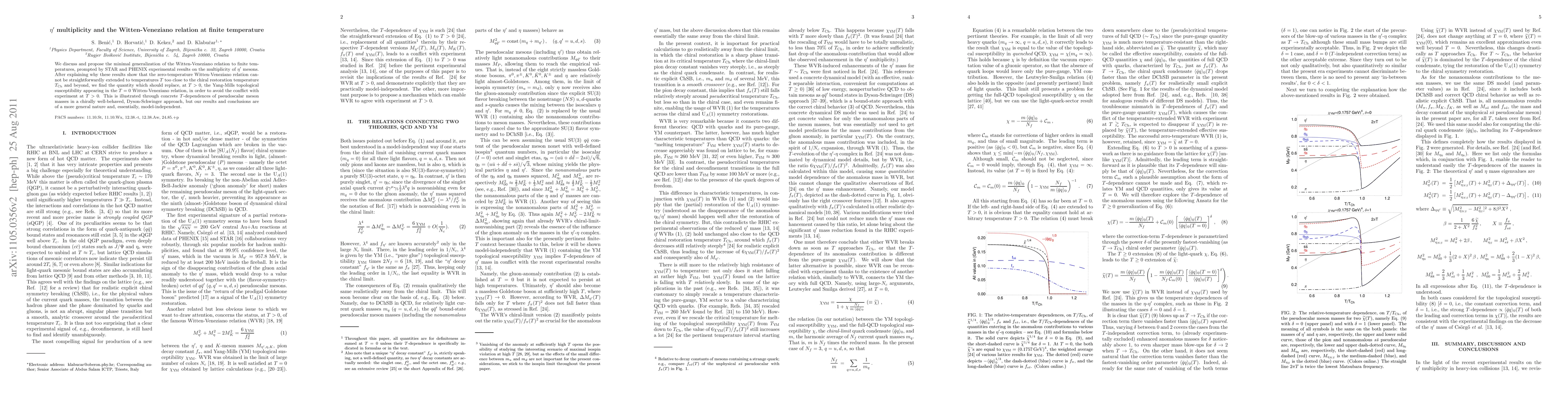This paper generalizes the Witten-Veneziano relation to finite temperatures, addressing discrepancies with experimental data on eta' meson multiplicity from STAR and PHENIX. It proposes a new temperature-dependent quantity to replace the zero-temperature Yang-Mills topological susceptibility, ensuring consistency with observed pseudoscalar meson masses.