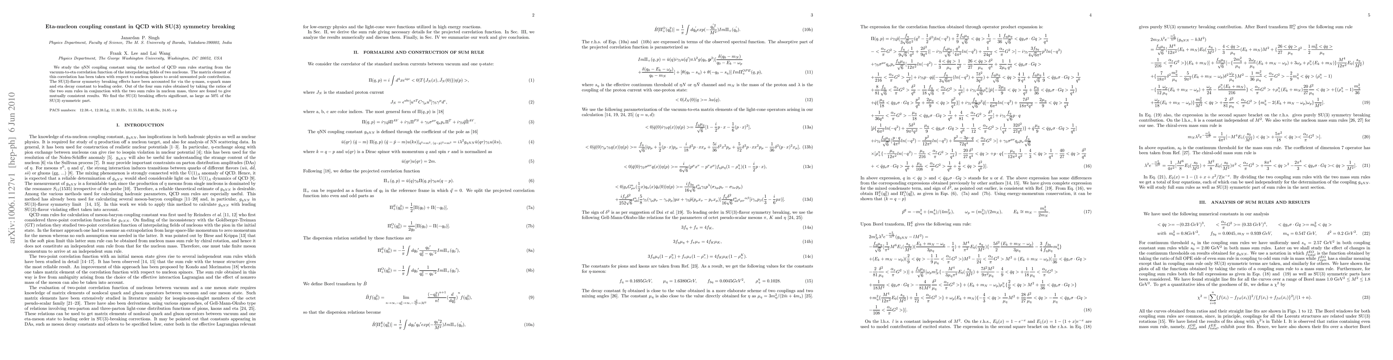 The research aims to determine the eta-nucleon coupling constant with SU(3) symmetry breaking effects.