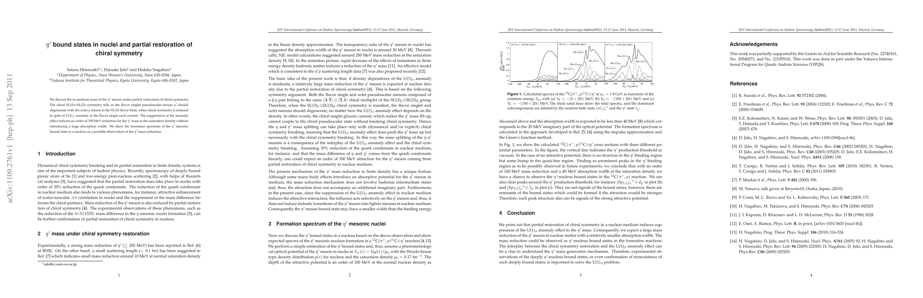 This paper explores the in-medium mass reduction of the eta-prime meson in nuclei due to the partial restoration of chiral symmetry, predicting a significant reduction of around 100 MeV without increasing its absorption width, suggesting a potential observable eta-prime mesonic bound state in nuclear environments.