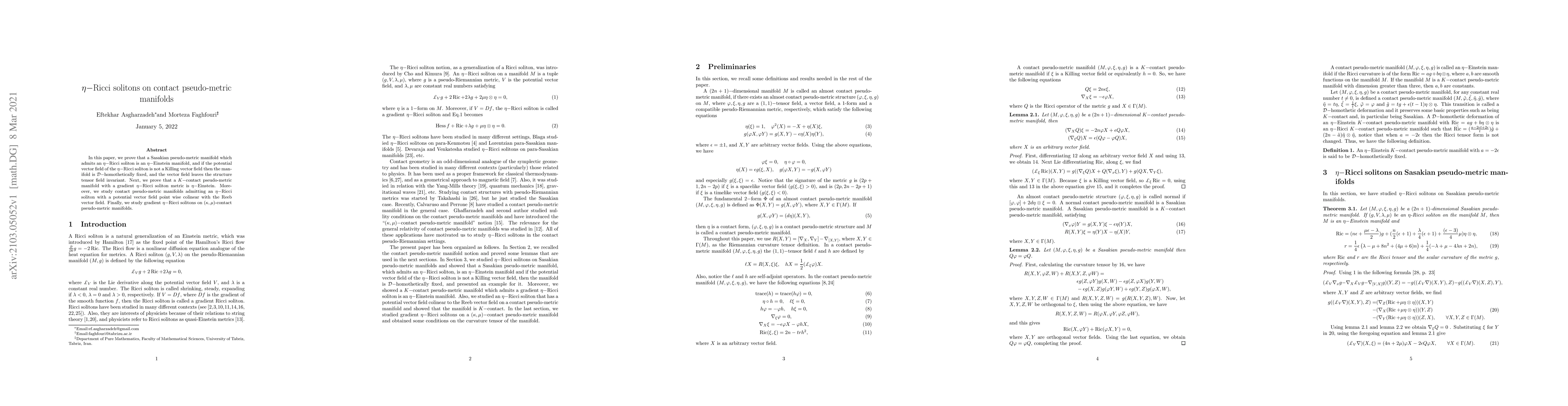 In this paper, we prove that a Sasakian pseudo-metric manifold which admits an $\eta-$Ricci soliton is an $\eta-$Einstein manifold, and if the potential vector field of the $\eta-$Ricci soliton is not a Killing vector field then the manifold is $\mathcal{D}-$homothetically fixed, and the vector field leaves the structure tensor field invariant. Next, we prove that a $K-$contact pseudo-metric manifold with a gradient $\eta-$Ricci soliton metric is $\eta-$Einstein. Moreover, we study contact pseudo-metric manifolds admitting an $\eta-$Ricci soliton with a potential vector field point-wise colinear with the Reeb vector field. Finally, we study gradient $\eta-$Ricci solitons on $(\kappa, \mu)$-contact pseudo-metric manifolds.