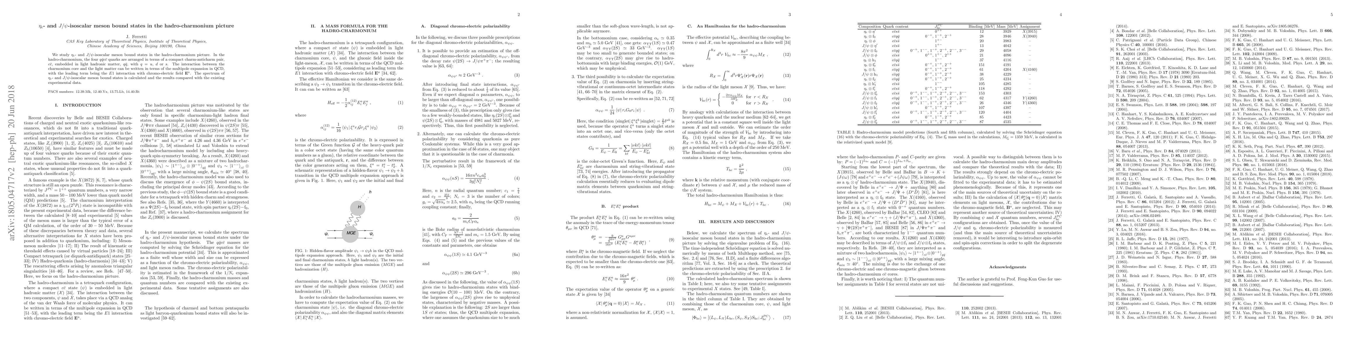We study $\eta_{\rm c}$- and $J/\psi$-isoscalar meson bound states in the hadro-charmonium picture. In the hadro-charmonium, the four $q\bar q c \bar c$ quarks are arranged in terms of a compact charm-anticharm pair, $c \bar c$, embedded in light hadronic matter, $q \bar q$, with $q = u$, $d$ or $s$. The interaction between the charmonium core and the light matter can be written in terms of the multipole expansion in QCD, with the leading term being the $E1$ interaction with chromo-electric field ${\bf E}^a$. The spectrum of $\eta_{\rm c}$- and $J/\psi$-isoscalar meson bound states is calculated and the results compared with the existing experimental data.
